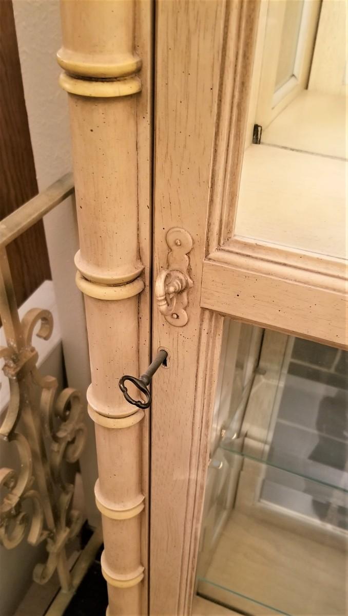 Lot #28  Mid Century Faux Rattan Display Cabinet - Working key