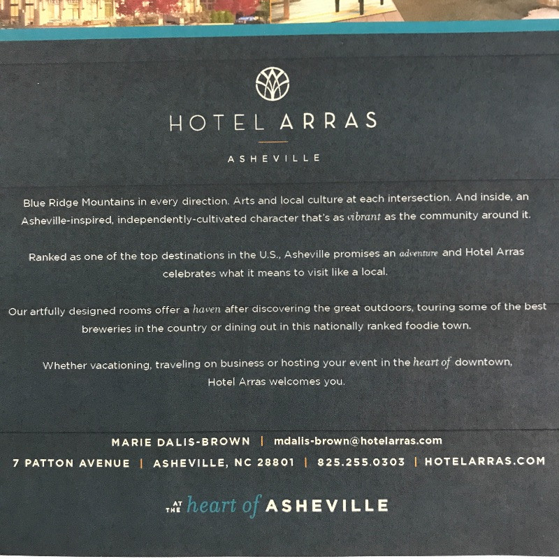 Lot 28 - Kimpton Hotel Arras, Asheville, one night stay