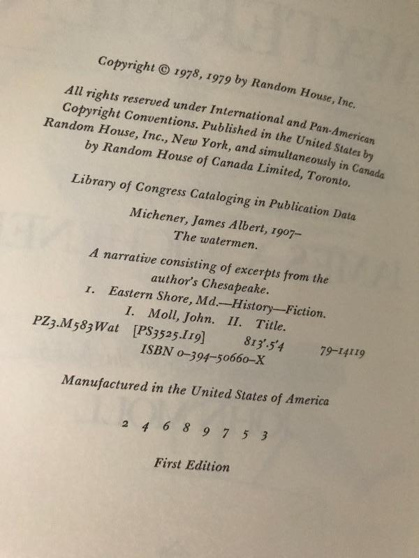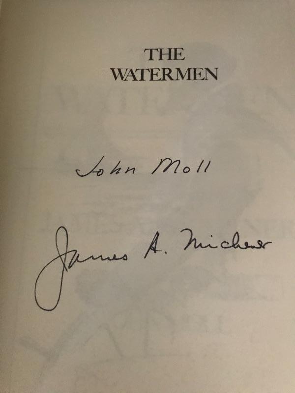 Signed First Edition hardback book " The Watermen" by James A. Michener and John Moll the illustrator in the book