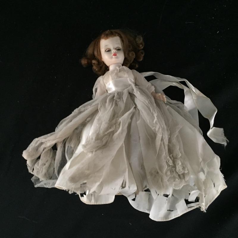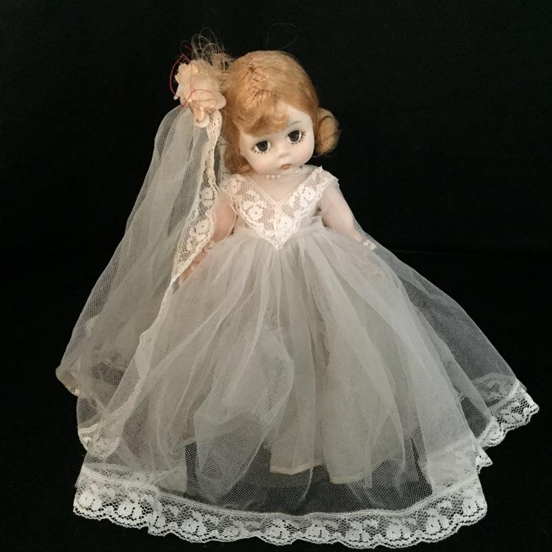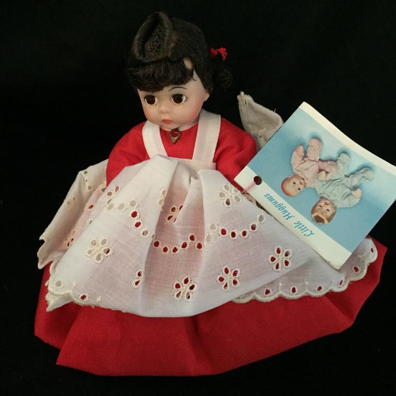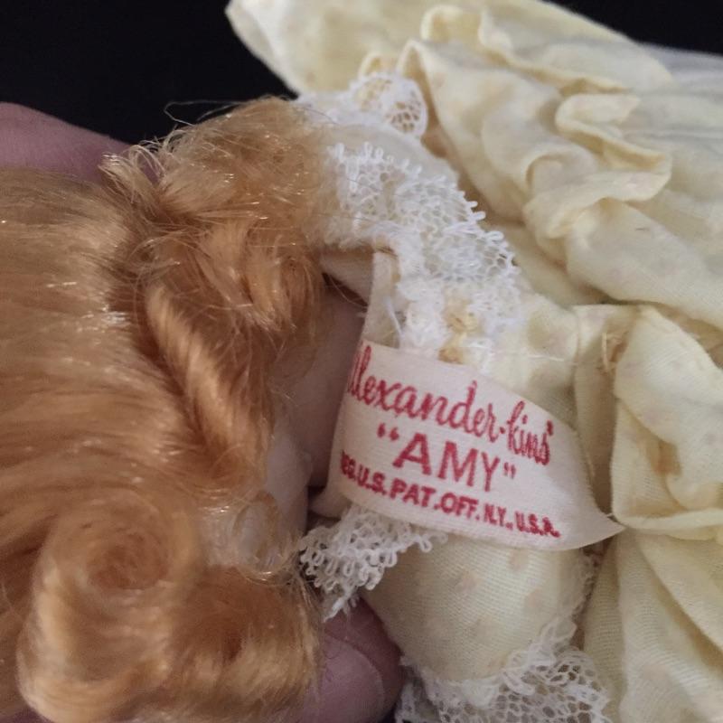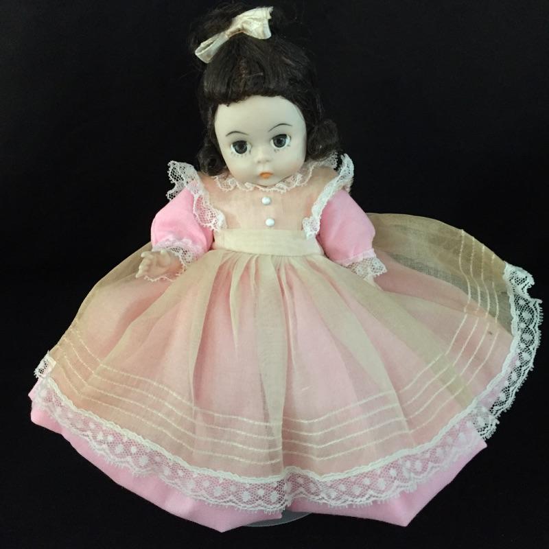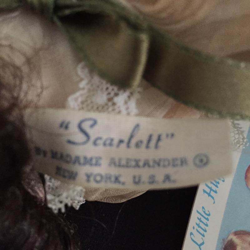 Six Madame Alexander Dolls including Jo , Scarlett , Amy and Beth and three boxes. Seventh doll the head is not attached. Dolls measure 7.5” tall.