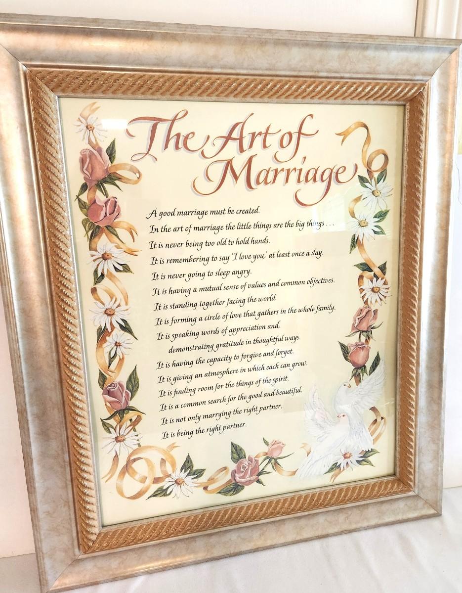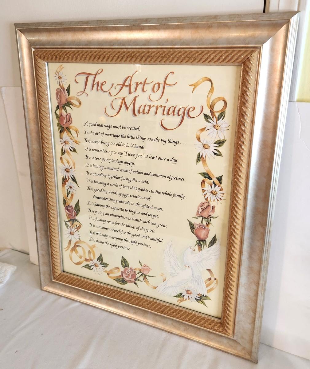 Rather large framed print explaining "The Art of Marriage" - measures 21" x 25" - Decorator piece - nicely framed.