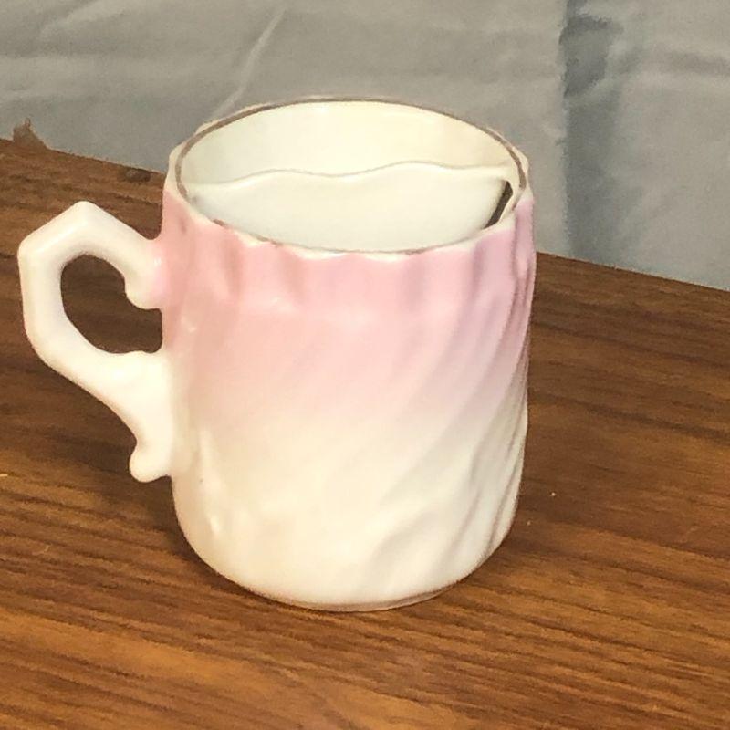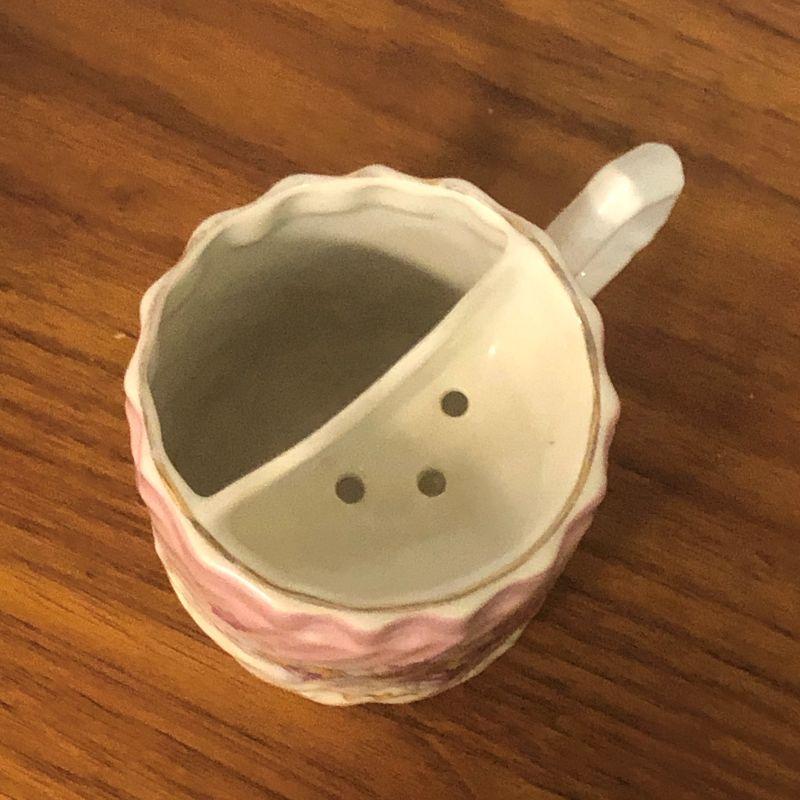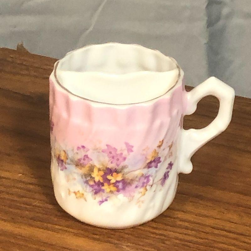 I Googled why so many mustache mugs have a floral design and instead of an answer, I came across the history of mustache mugs. But then I began looking closer at the mugs I have and I discovered that I don't have mustache mugs - they are shaving mugs! It's amazing what you discovered when you go down the Google rabbit hole. So up for auction is a beautiful shaving mug in excellent condition. The only issue is a little bit of gold trim wear along the edge that is open (opposite the ledge). It is 3.5" tall. If you would like to read a bit about the two, check out this link http://bit.ly/3821tjz