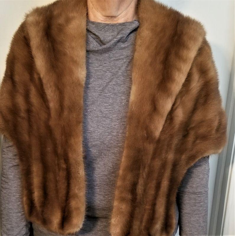 This pretty vintage mink stole was purchased at Godchaux's, probably in the 1960's. Lining and soft pelts are in very good condition - this lady took care of her things. Nonsmoking home. Furs don't usually state sizes, but I would put this stole at about a Size 12 - wouldn't go any larger than that.