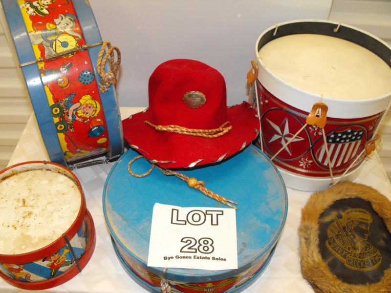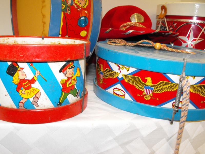 4 Drums, No Drum Sticks, some rust and water marks to top of drum Fair