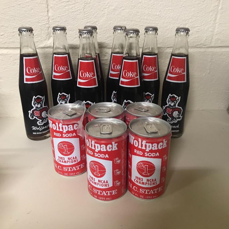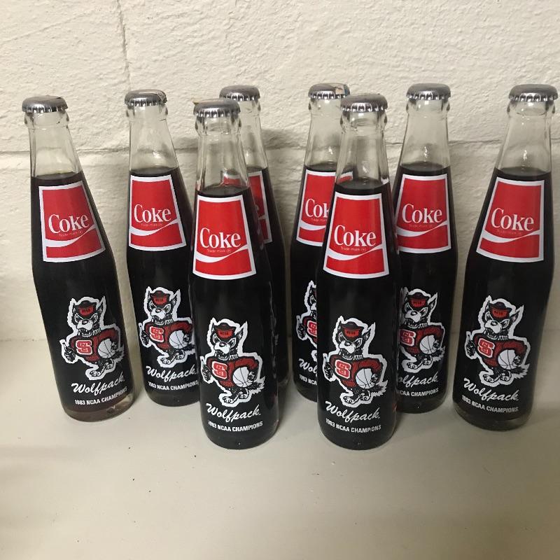 Collection of Nine coke bottles and five cans from the 1983 Wolfpack’s NCAA Championship. This is about it for you Wolfpackers. Just about everything else is Tar Heels. Local pick up only.