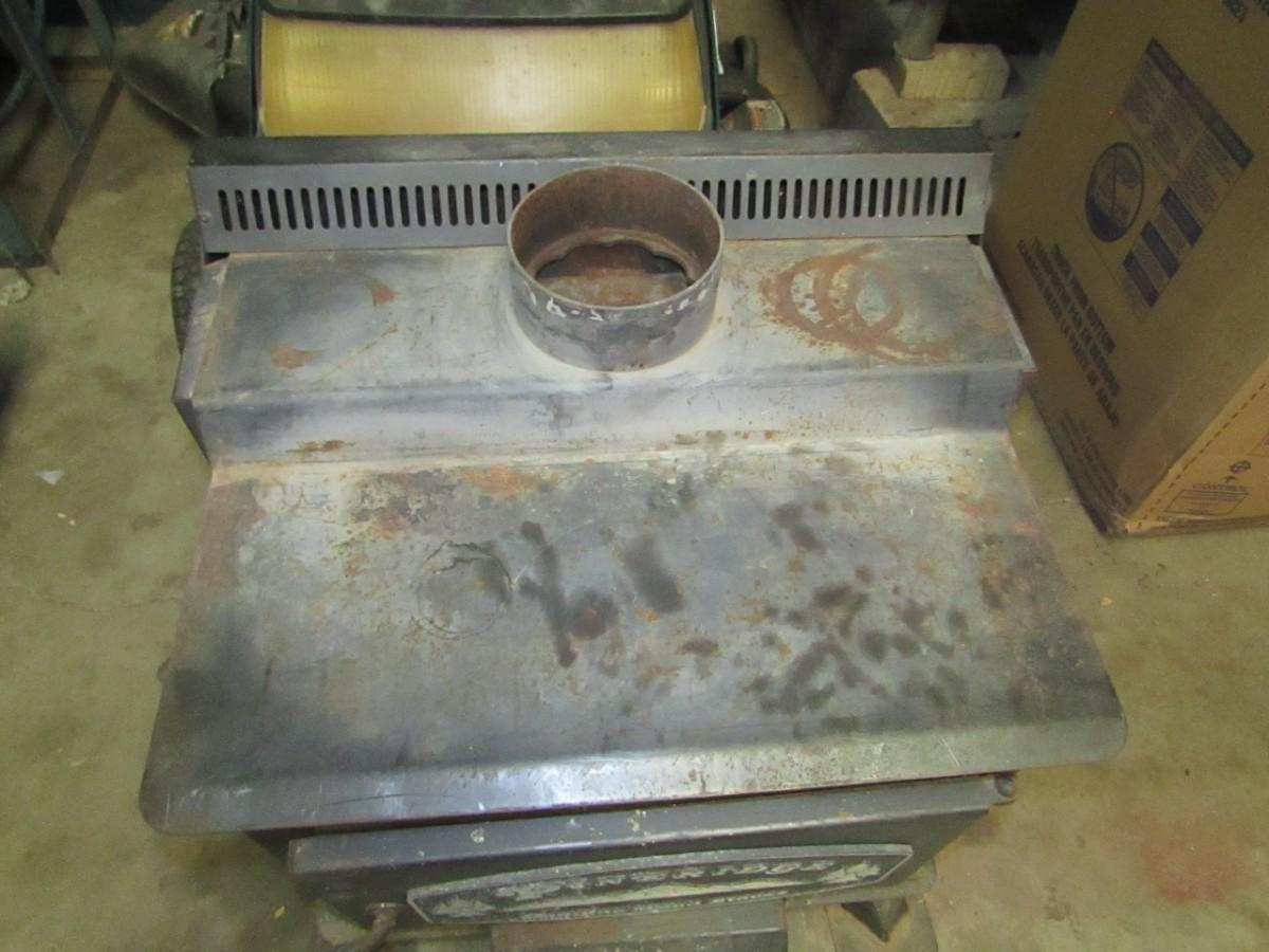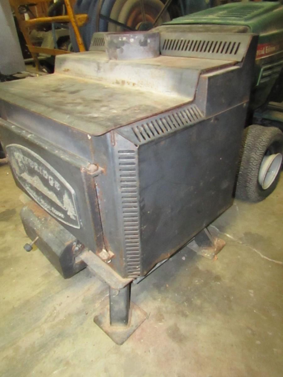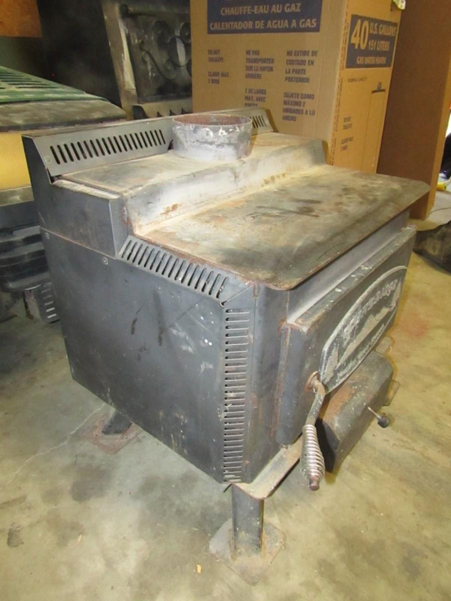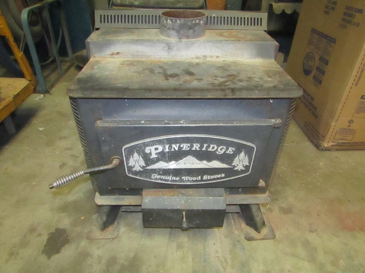 PINERIDGE WOODBURNING STOVE WITH EXHAUST PIPE. MEASURES 25.5" X 23" X 27"
