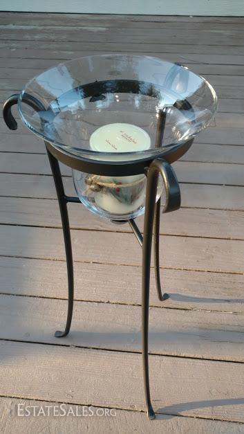 This beautiful Longaberger Wrought Iron and Glass Hurricane was retired in 2006. Slightly scratched on inside leg. Retail value new $139. Measures 12 3⁄4"l x 11"w x 29"h. Candle not included.