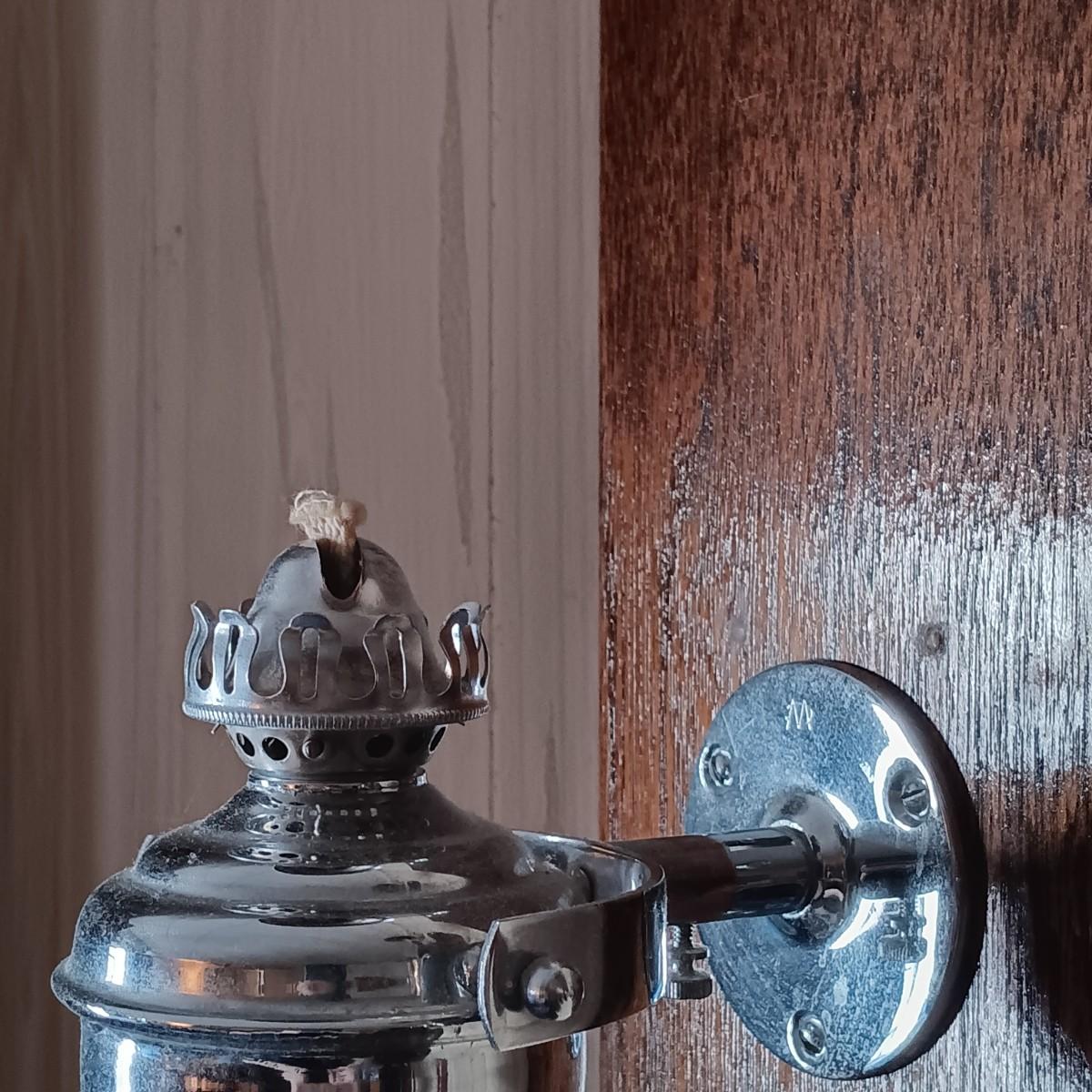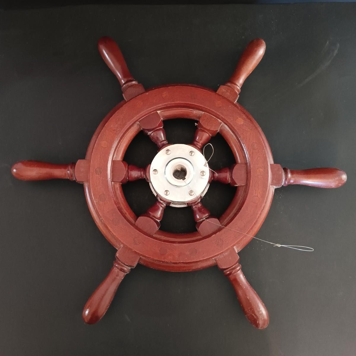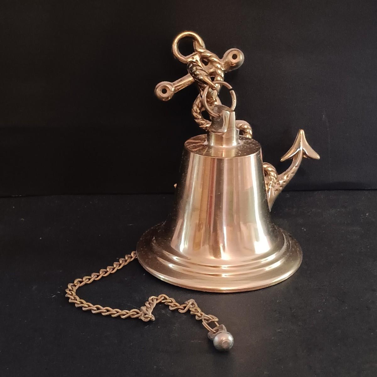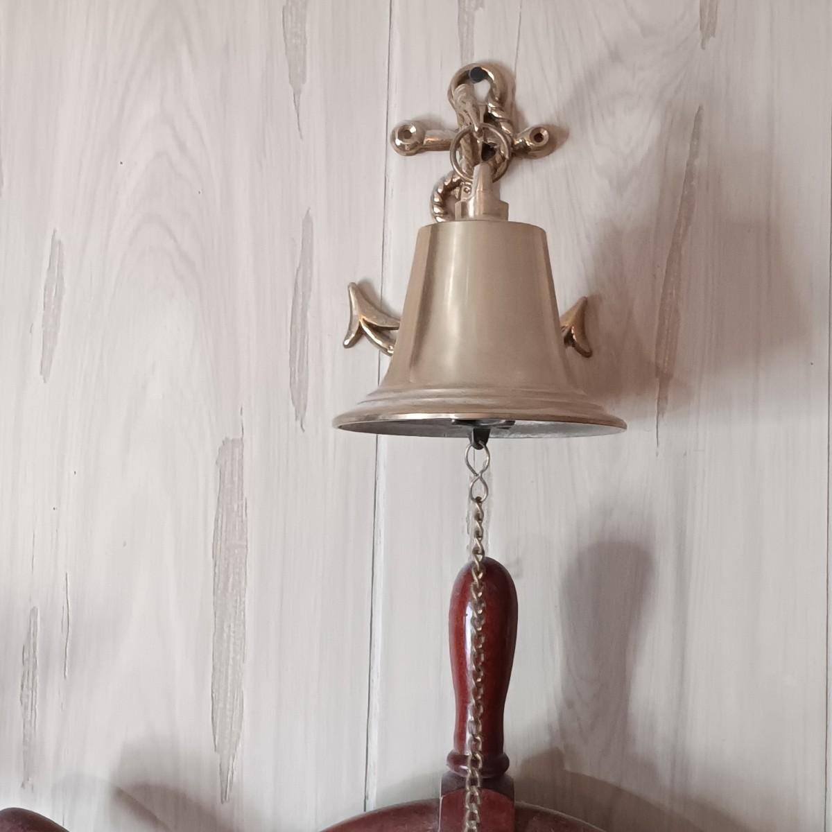 LOT 280: Vintage Gimbal Oil Lamps with Smoke Shades, Brass Ships Bell & Small Wood Ship Wheel