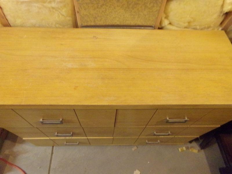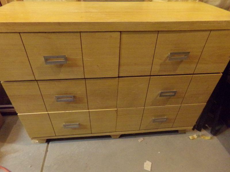 SIX DRAWER DRESSER, BLOND COLOR MEASUREMENTS ARE 36H x 48-1/4W x 18D