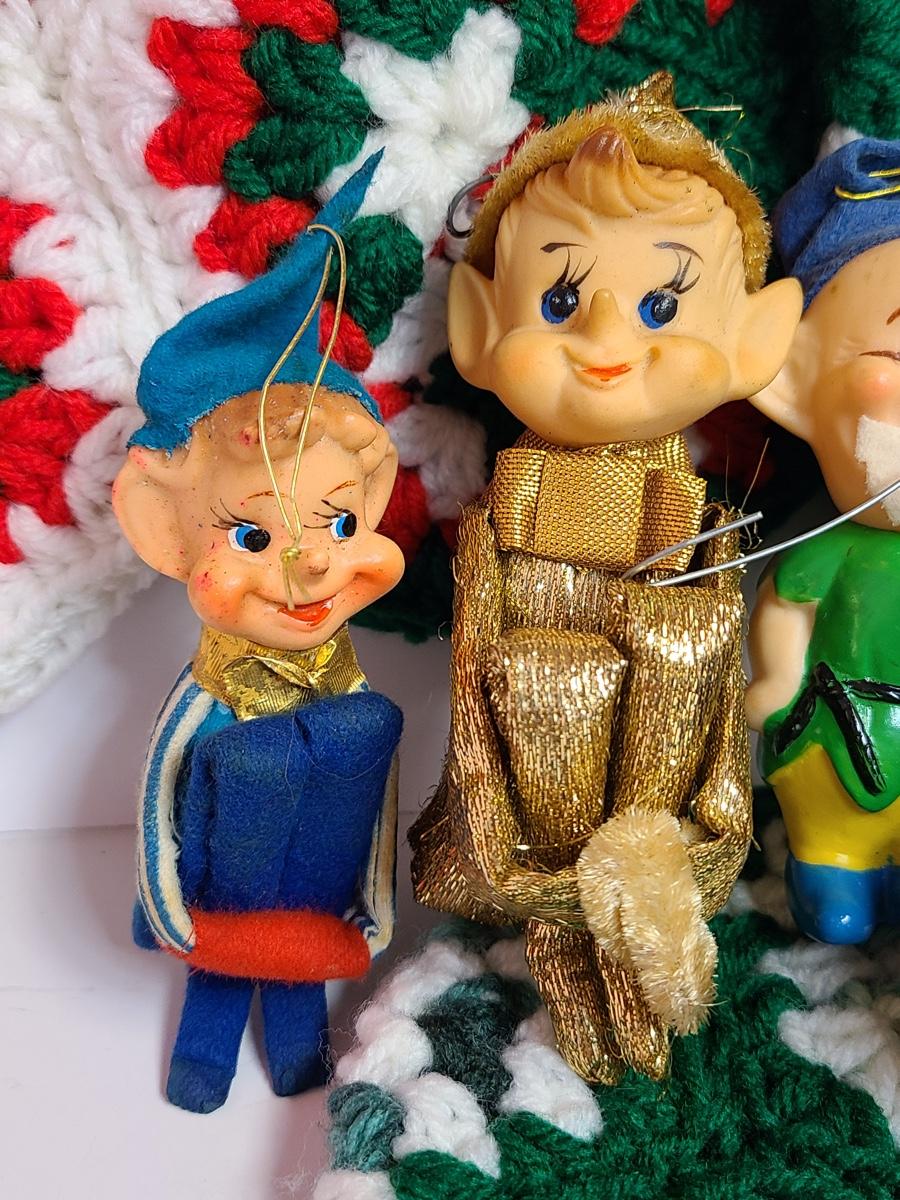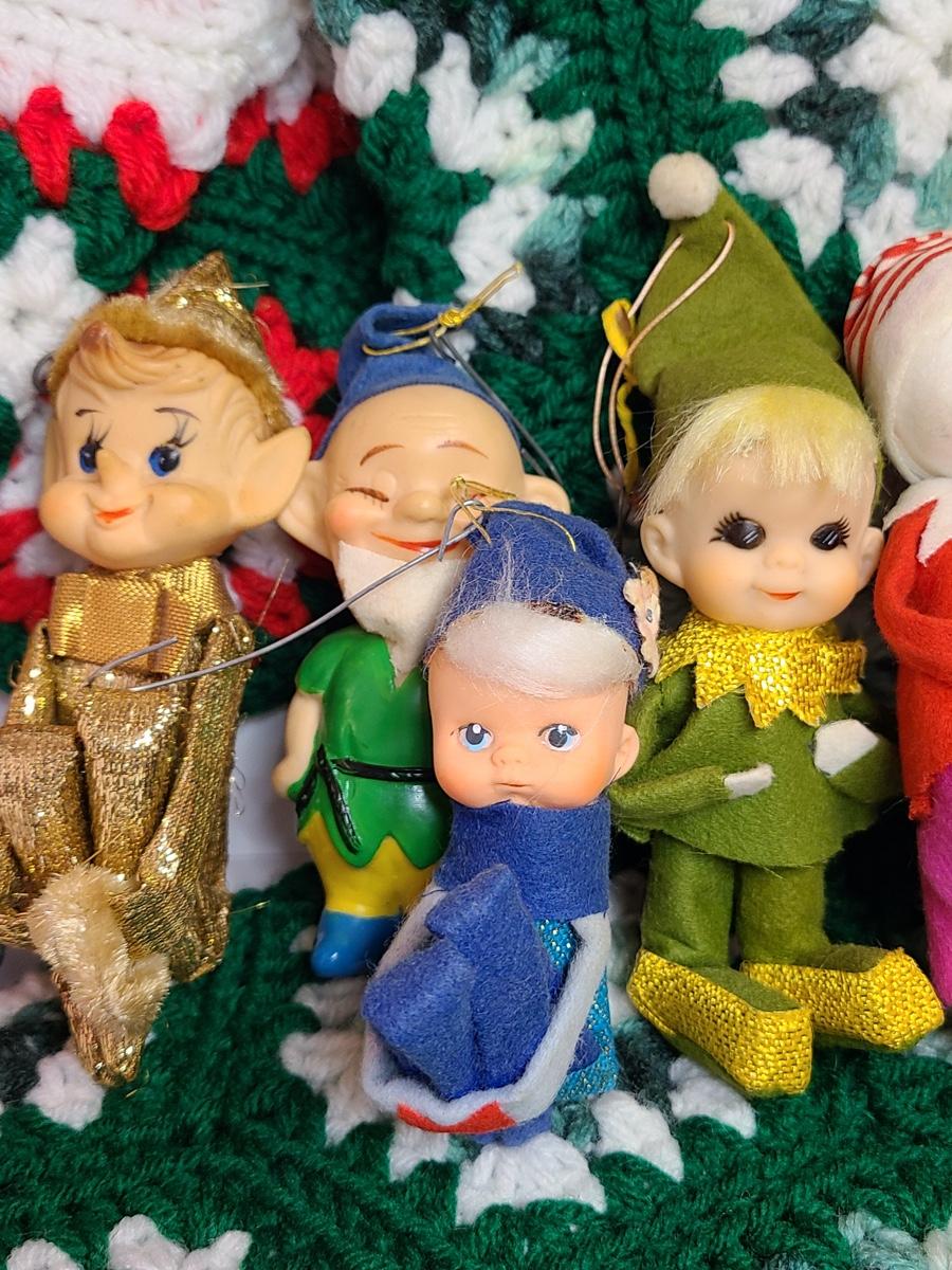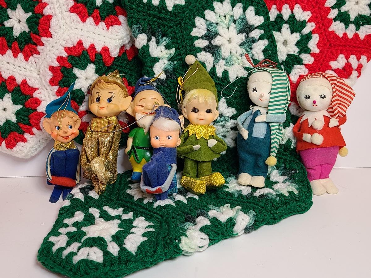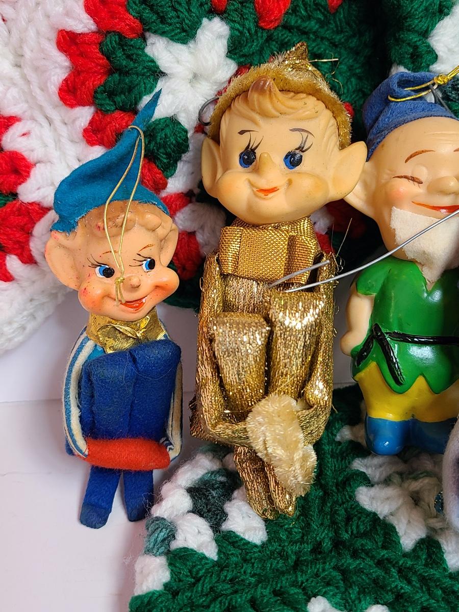 Lot 280: Vintage Christmas Elf "Kneehuggers", Japan Snow-people, and More