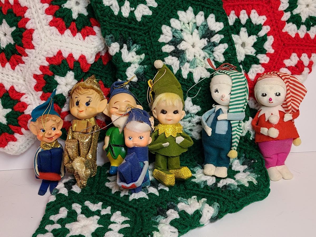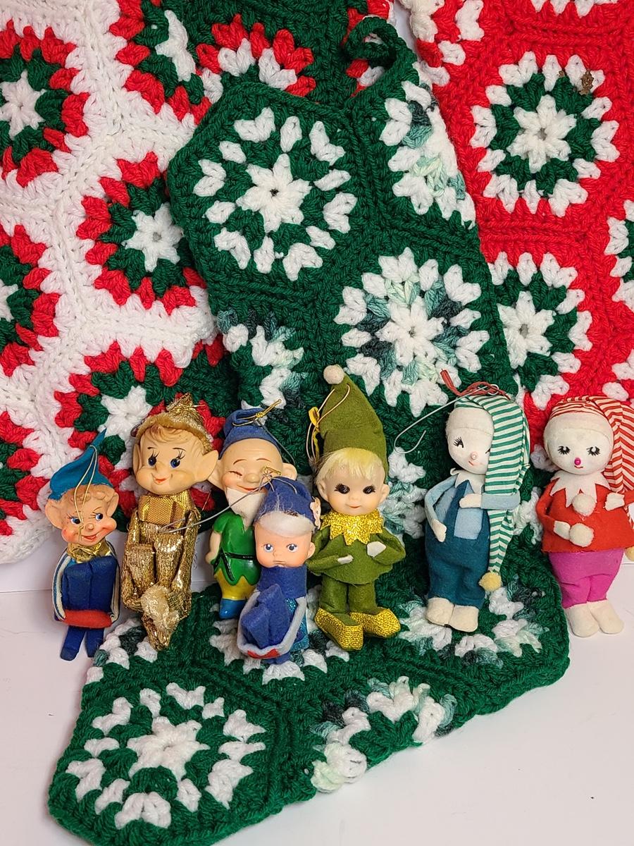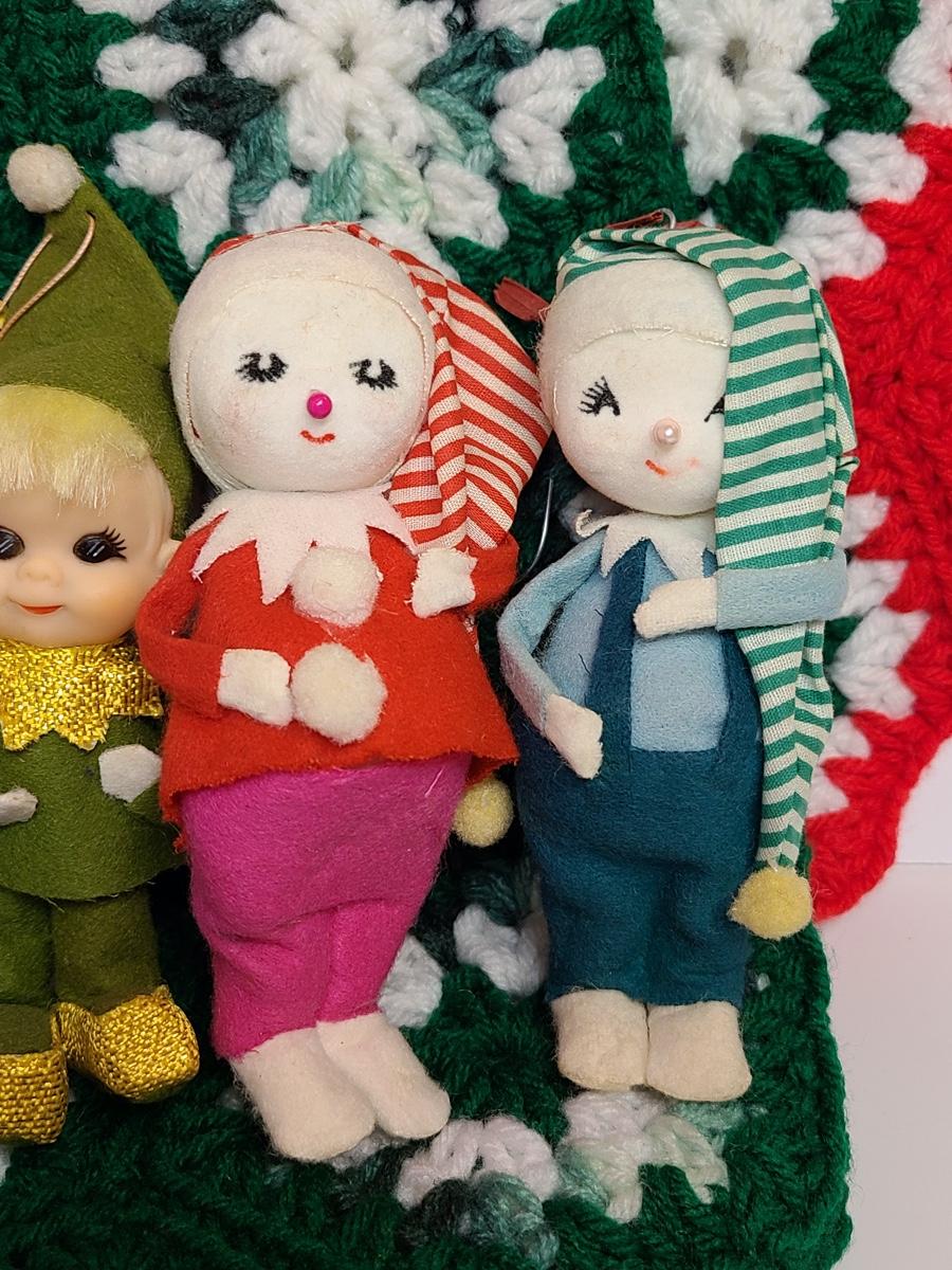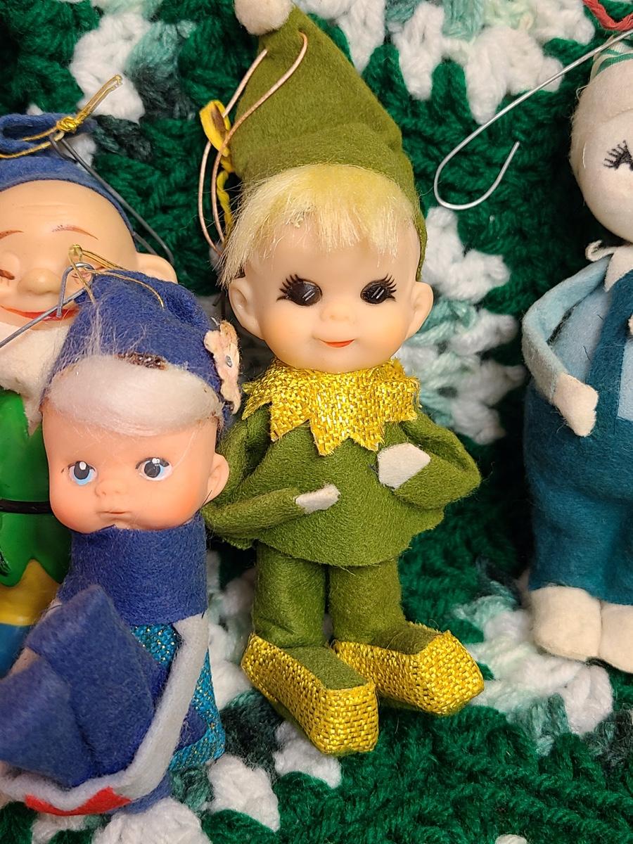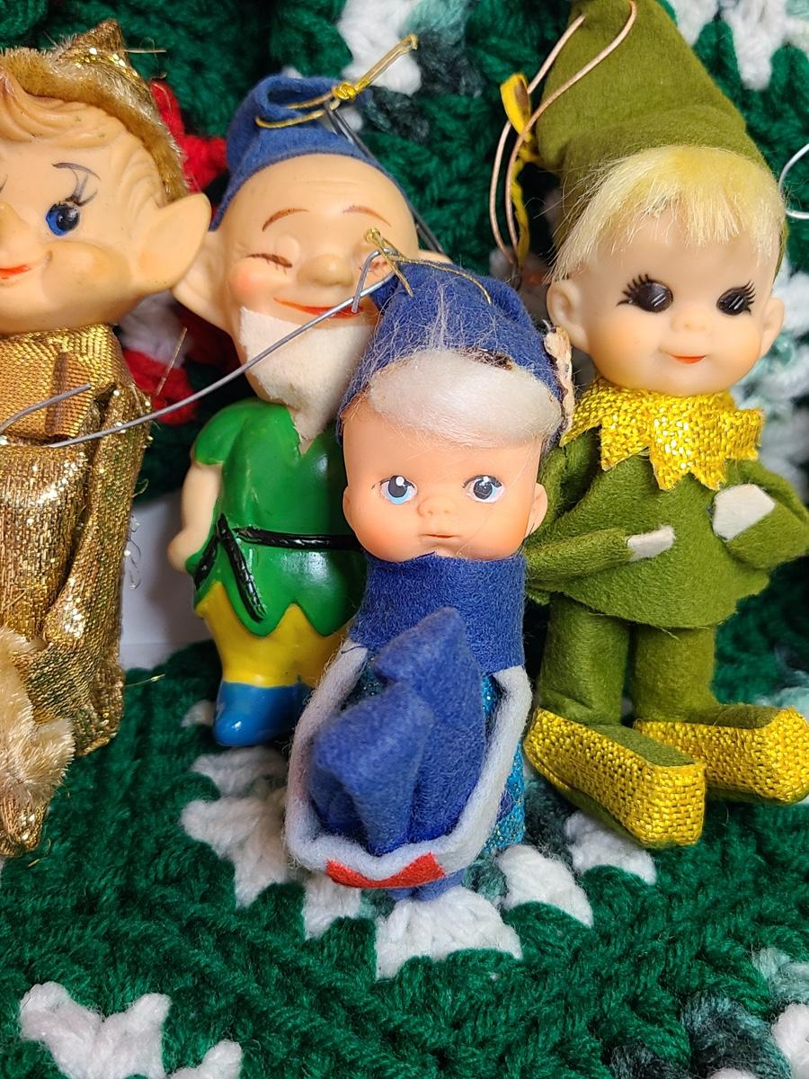 Lot 280: Vintage Christmas Elf "Kneehuggers", Japan Snow-people, and More