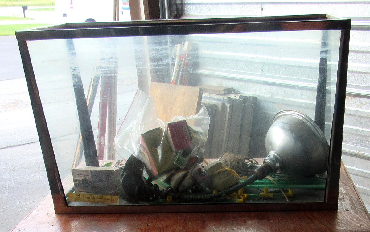Good shape, just needs a good cleaning. Was in storage for 20 years. Heavy, bring help to move. Owner thinks it is a 29 gallon piece.