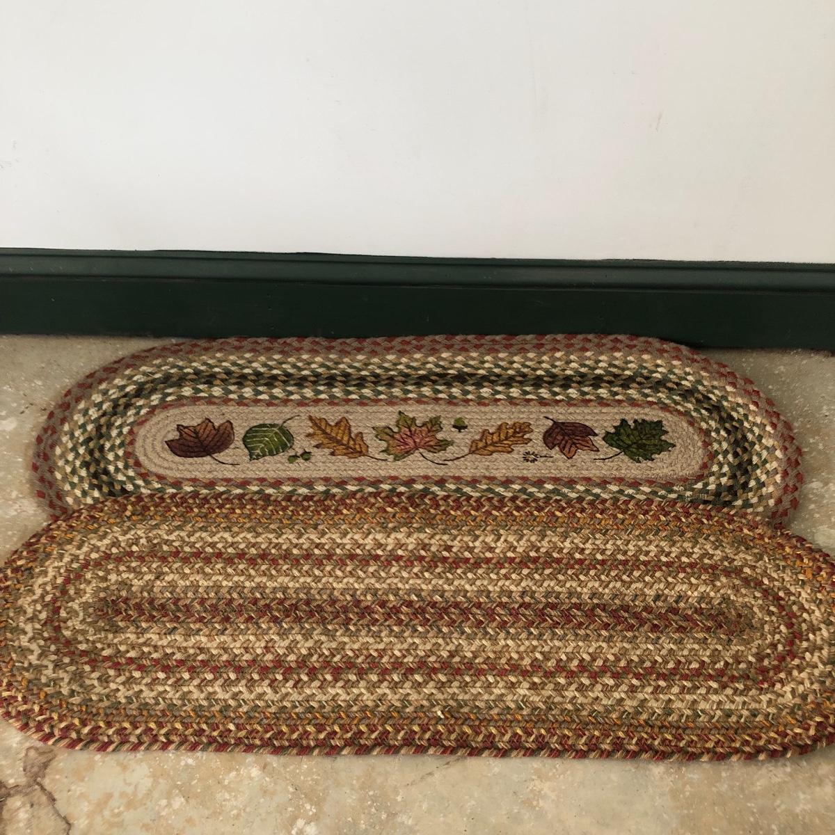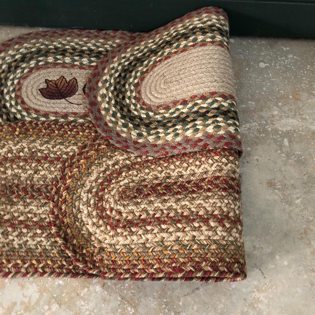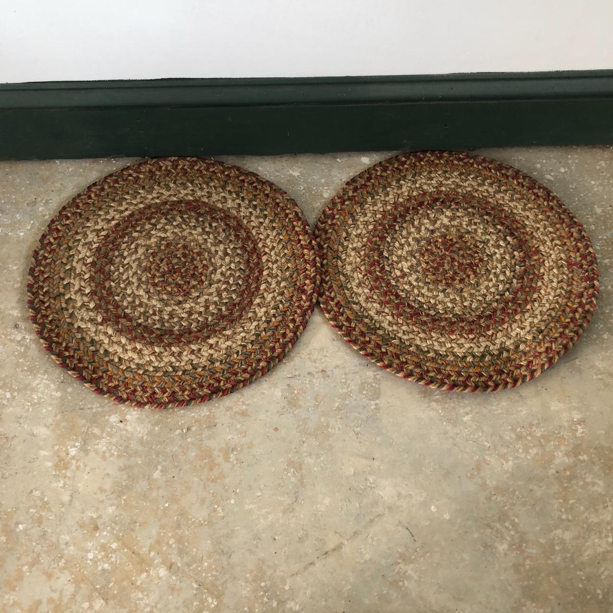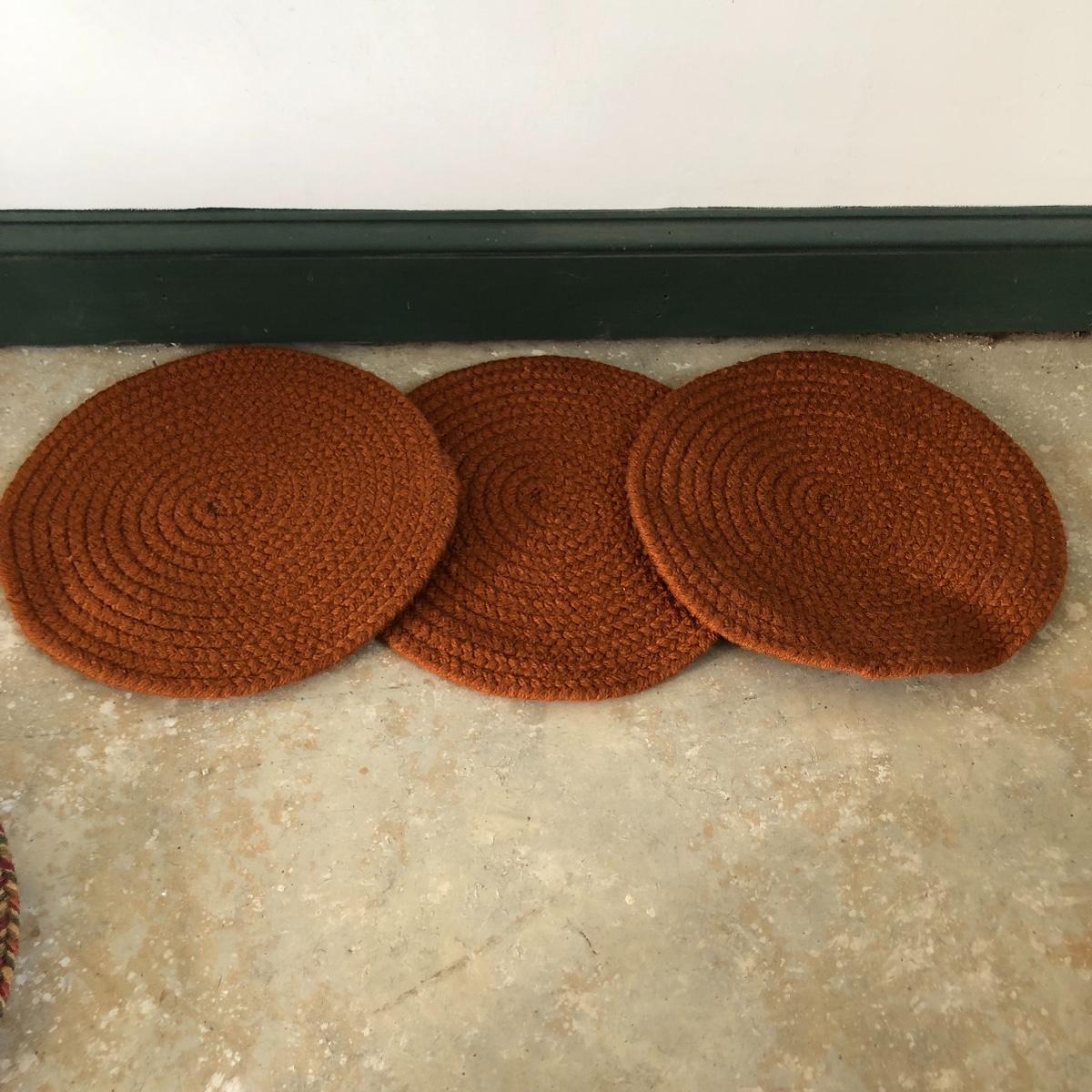 This lot includes colorful, beautiful and practical rugs. This Lot includes two oval rugs, rectangular rug, six coasters, two runners and fifteen round mats that are sized 8”D-15”D.