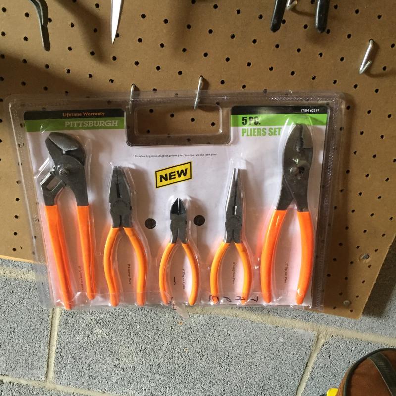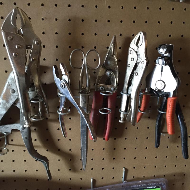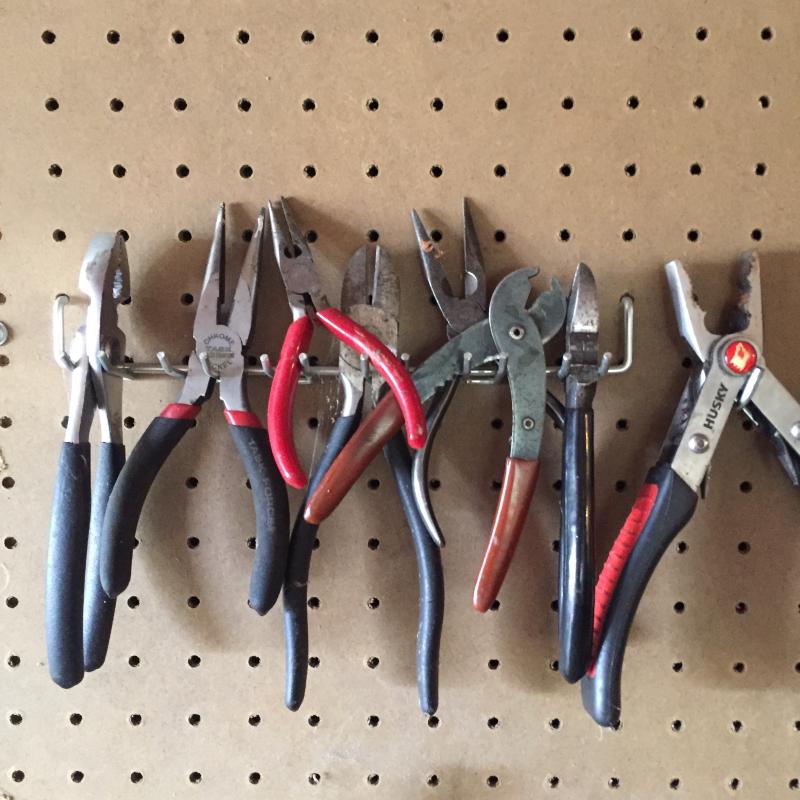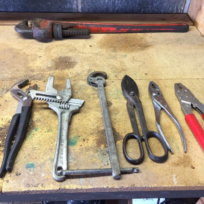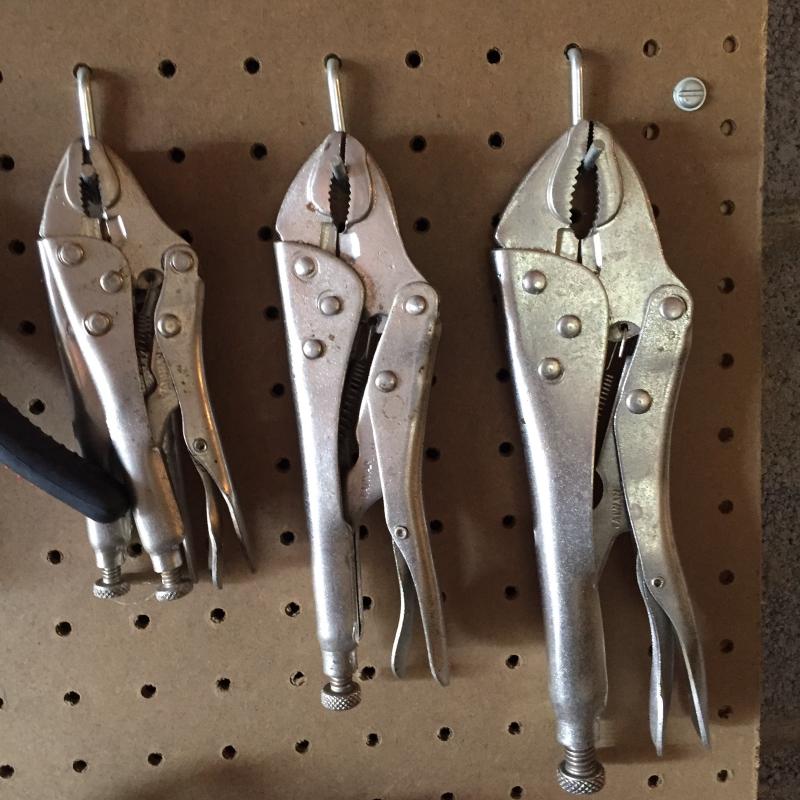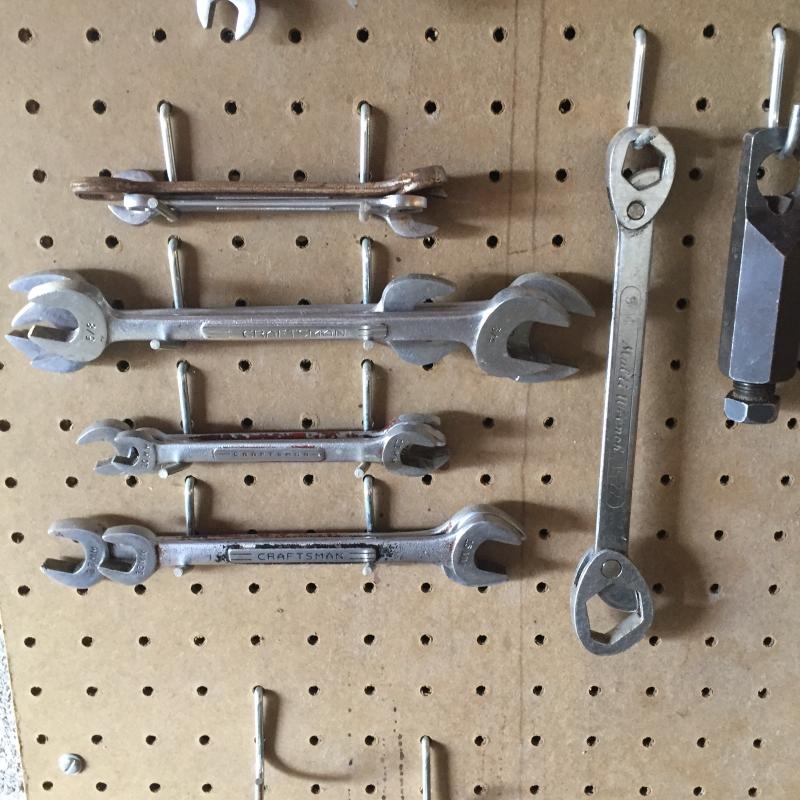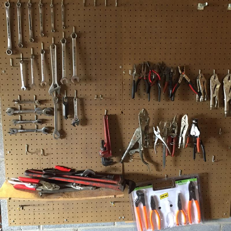 Craftsman and other wrenches 24” Ridgid pipe wrench,vise grip style pliers and more. Pegboard not included.