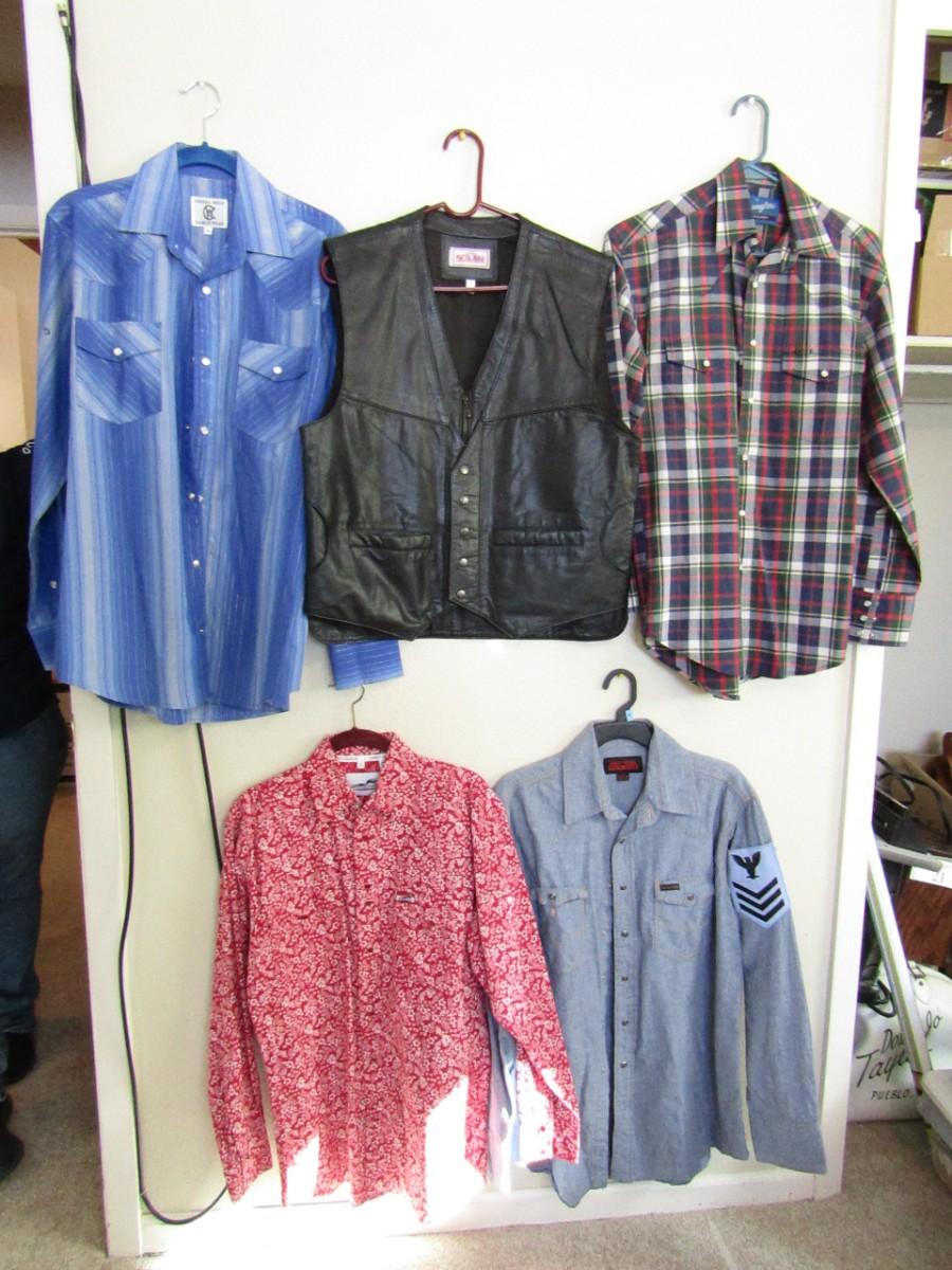 LOT 280 MEN'S WESTERN SHIRTS AND A LEATHER VEST SIZE SMALL