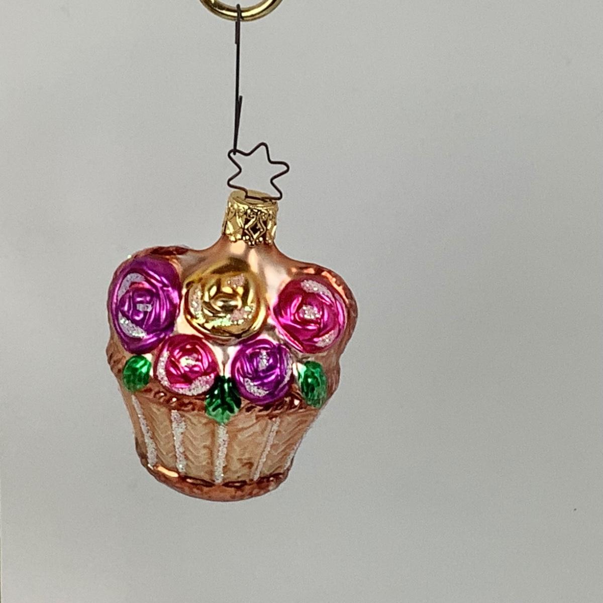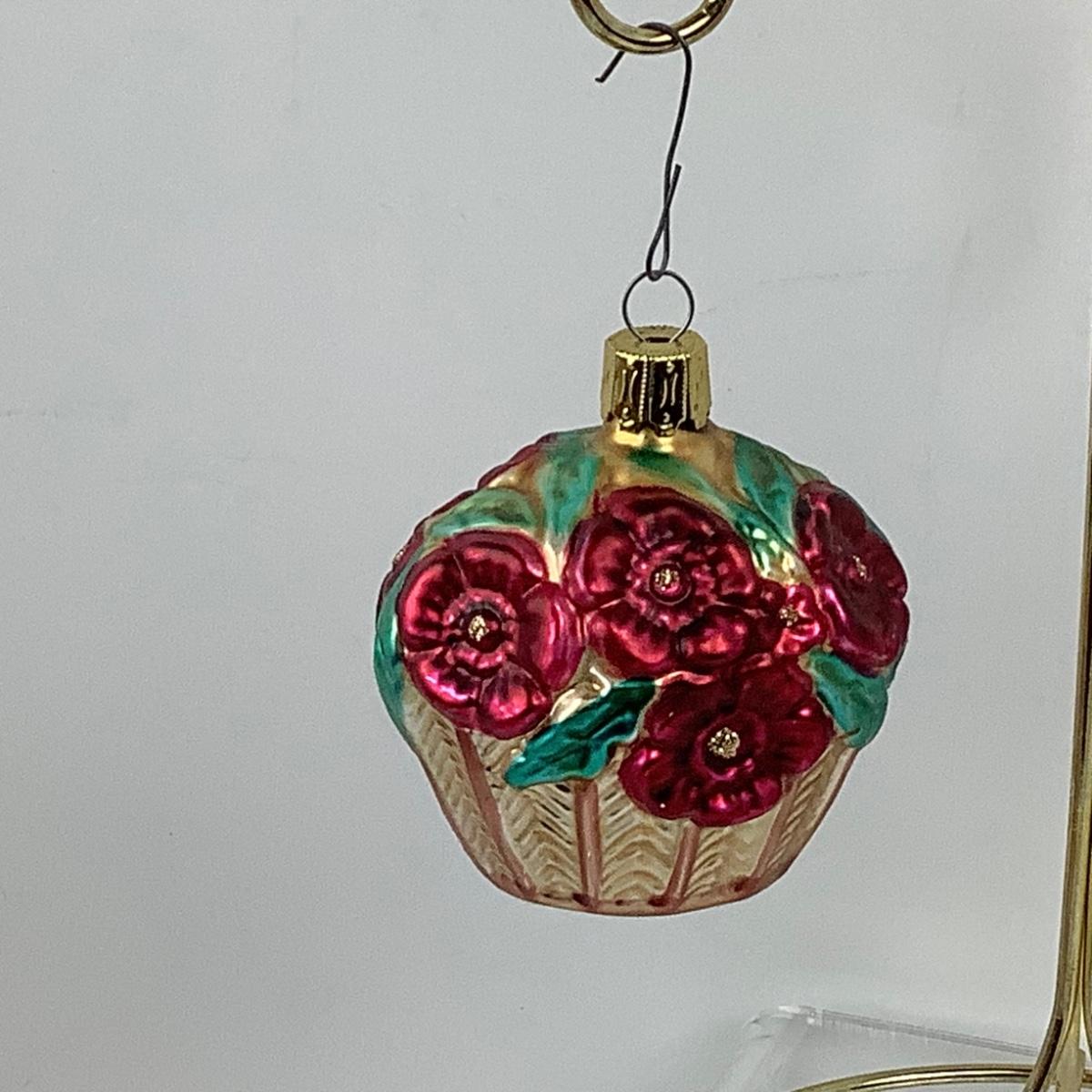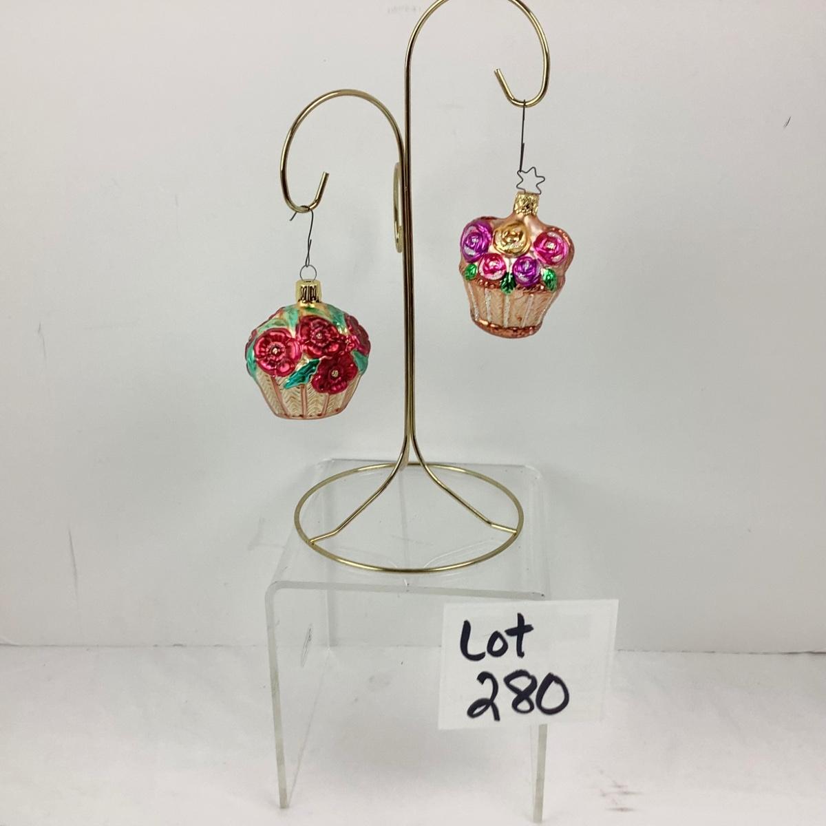 Lot 280 Pair of Vintage Floral Bouquet Basket Blown Glass Ornaments