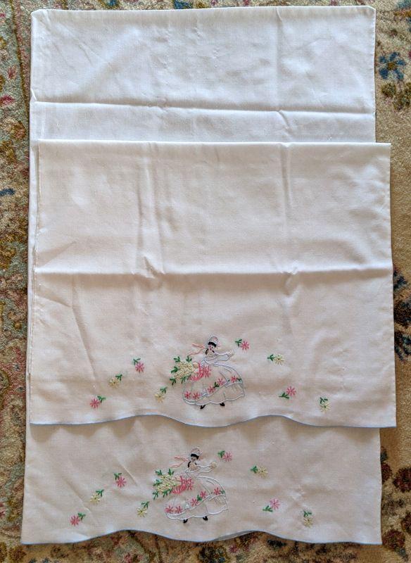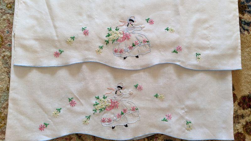 Lot 280 s Pair of Vintage Pillowcases with Embroidery Standard Size