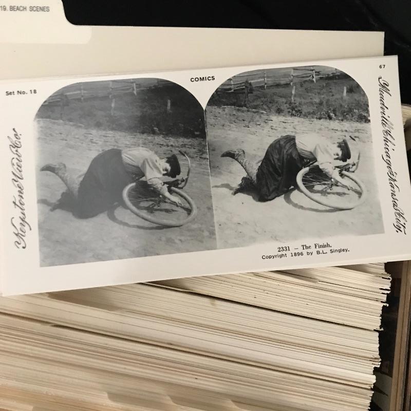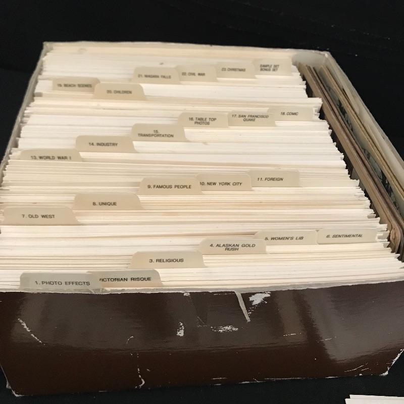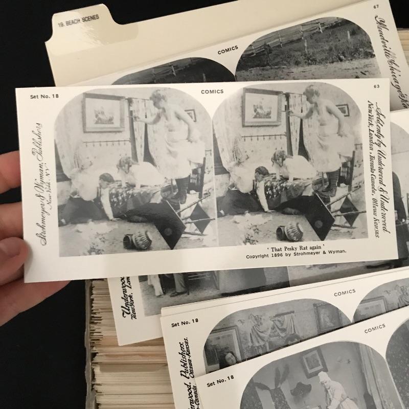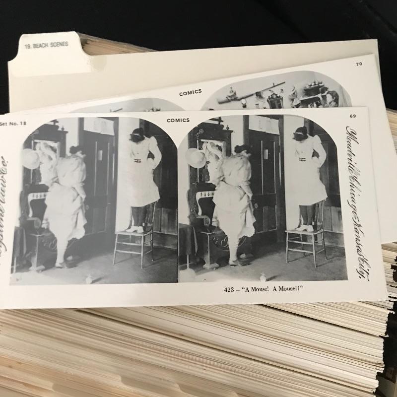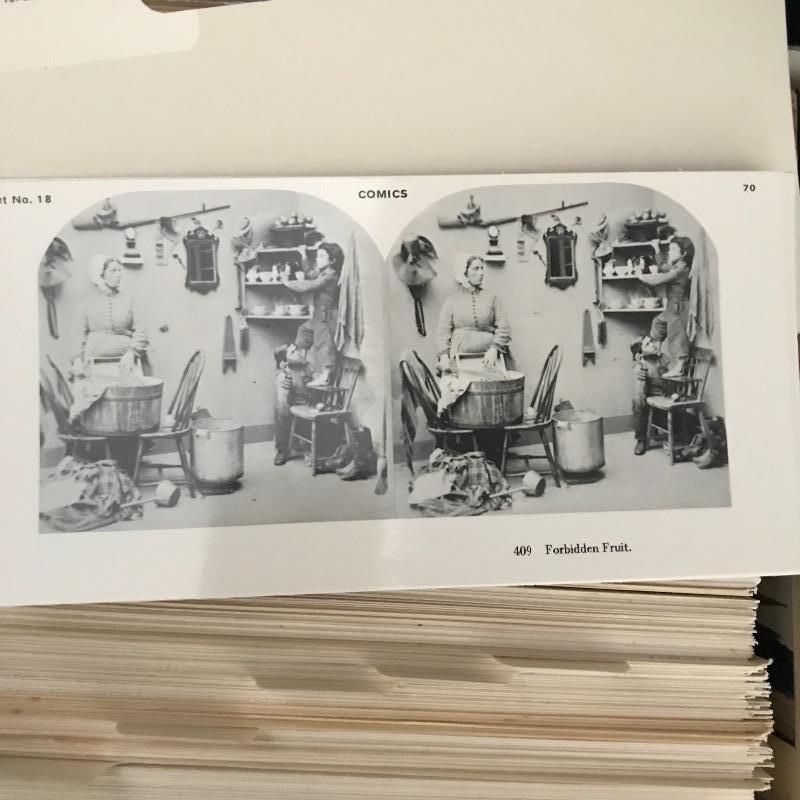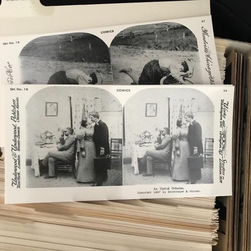 This very large and unique lot includes dozens, possibly hundreds of stereoscope slides that have been grouped with categories such as Civil War, Old West, Beach Scenes, Religious, Women’s Lib and much more. Only a handful are shown in photographs. This lot also includes two “The Story of the Stereoscope” pamphlets. See images.