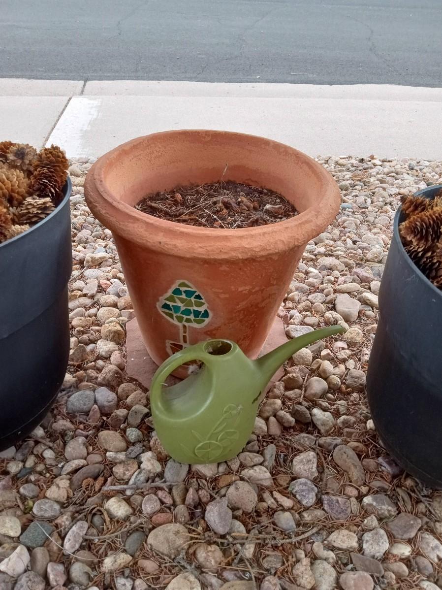 LOT 280  FOUR FLOWER POTS AND A SMALL WATERING CAN