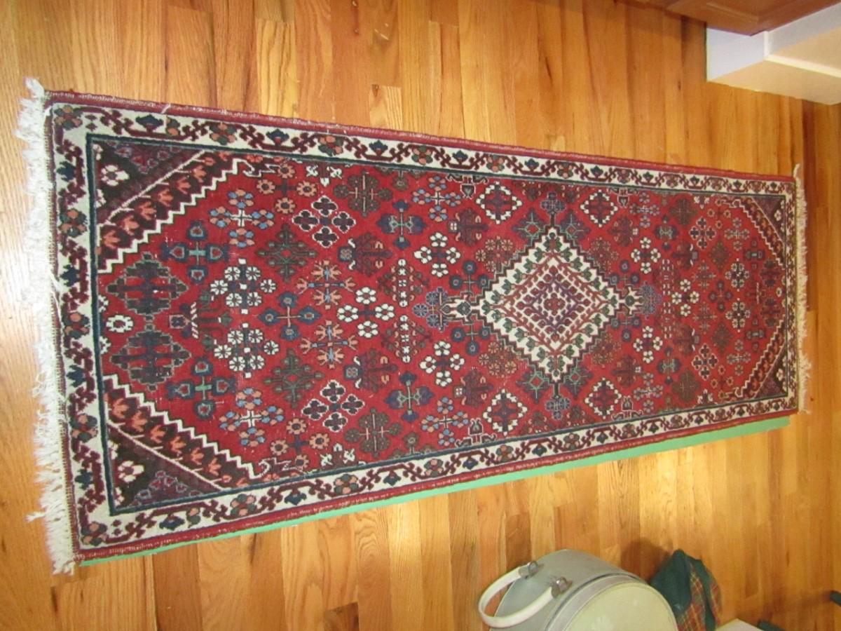 HALL RUNNER RUG WITH PAD SOME DAMAGE TO THE FRINGE 23" X 63"