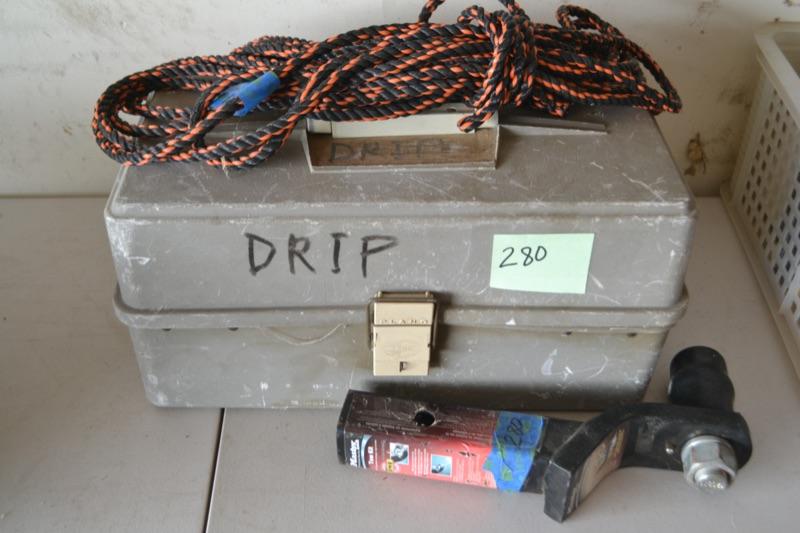 LOT 280. TOOL BOX, ROPE AND TOW HITCH