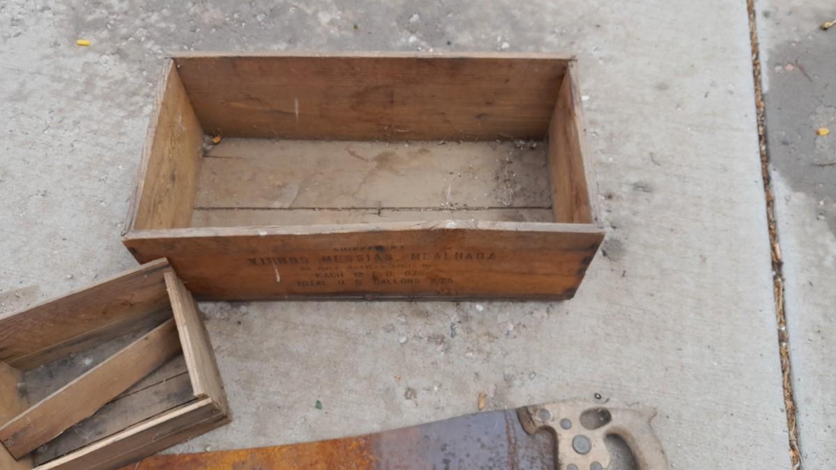 LOT 280 VINTAGE WOODEN BOXES WITH HAND SAW (WS)