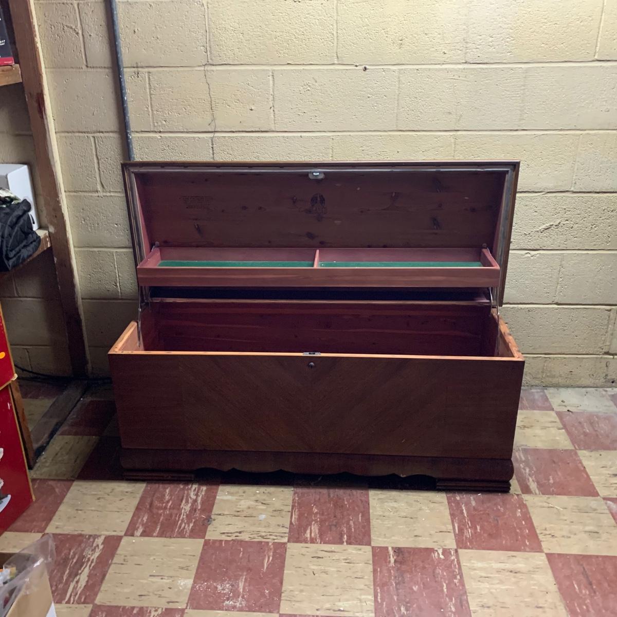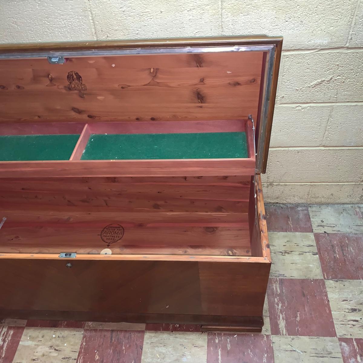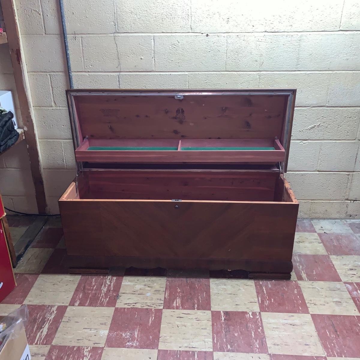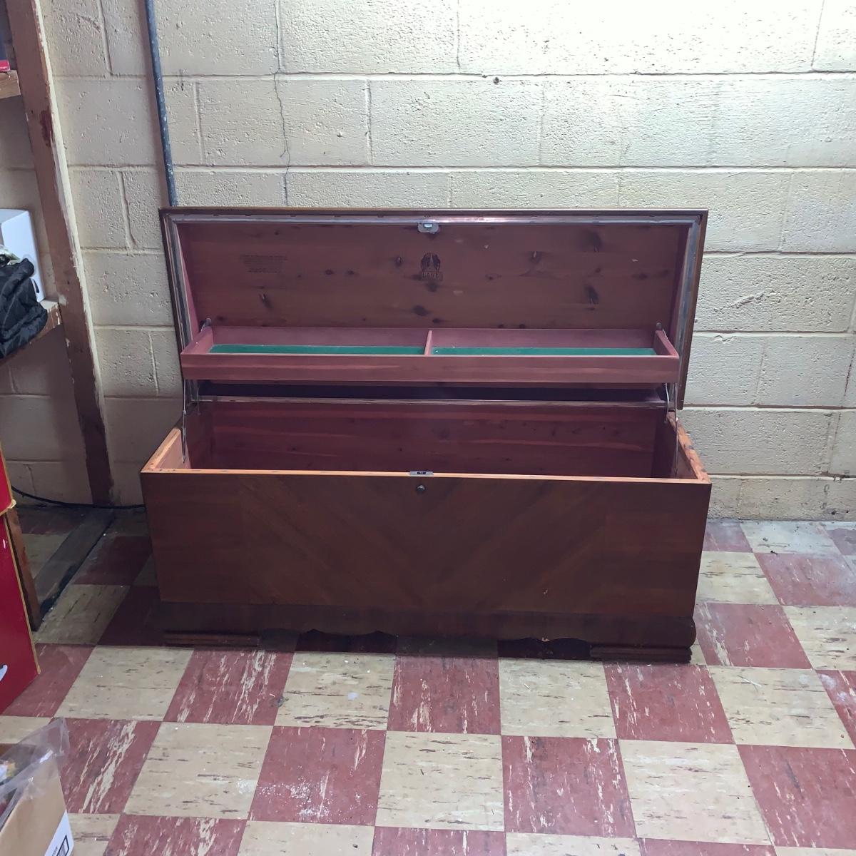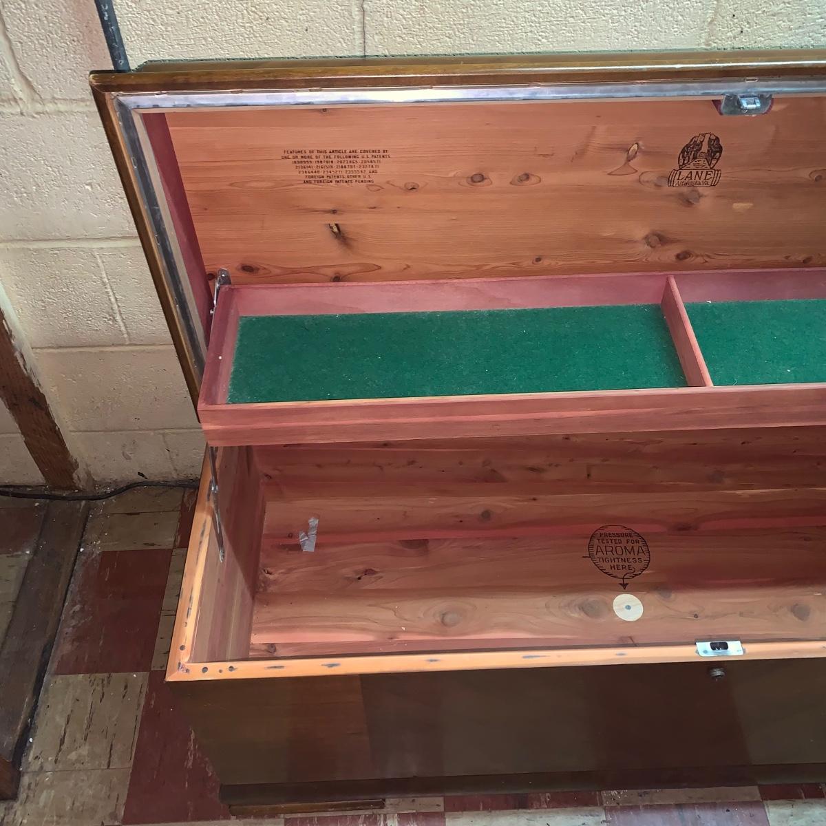 Chest measures 46W x 18D x 22H. Made in Altavista, Virginia.