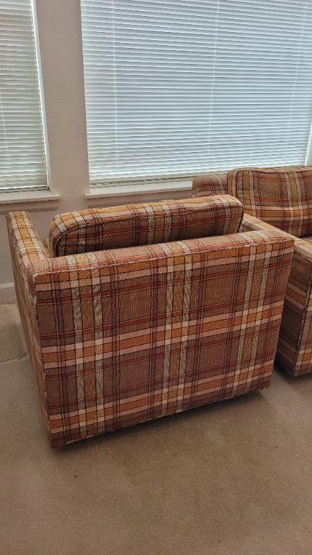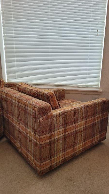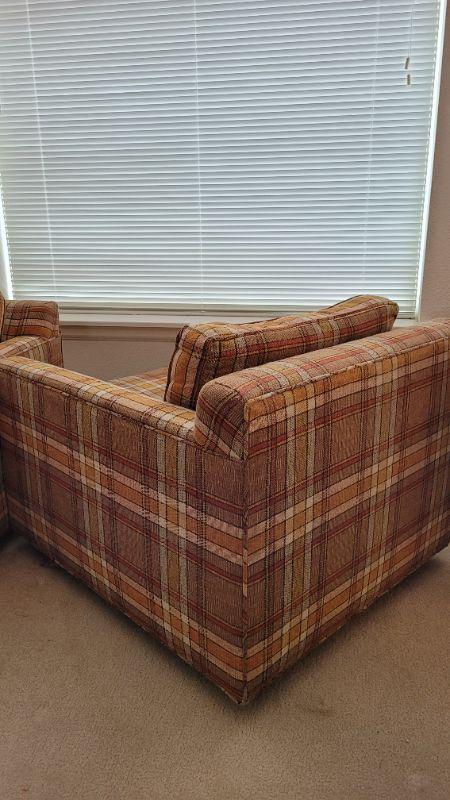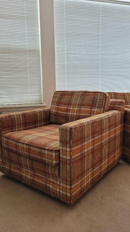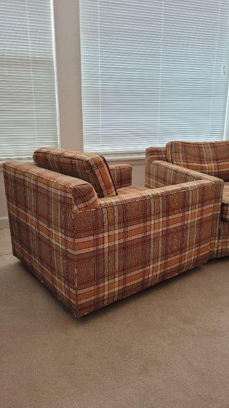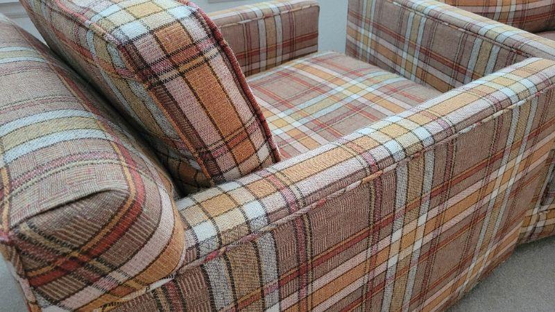 Ms. Museum RATING: 7.5 out of 10 due to light presence of cat hairs and fabric piling (fuzz balls) on surface that will need to be buzzed off. No odors, rips or stains that we noticed during inspection. Set needs a fresh fabric shaving and light cleaning to restore to original condition.