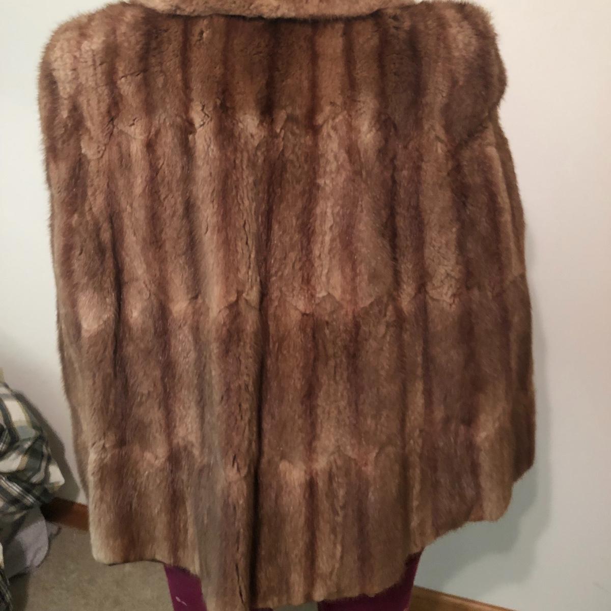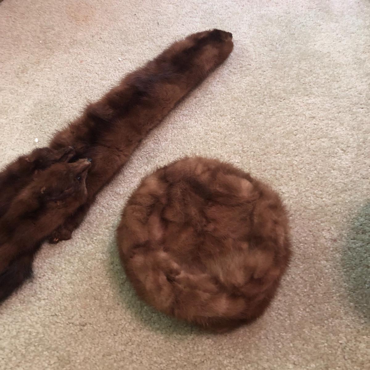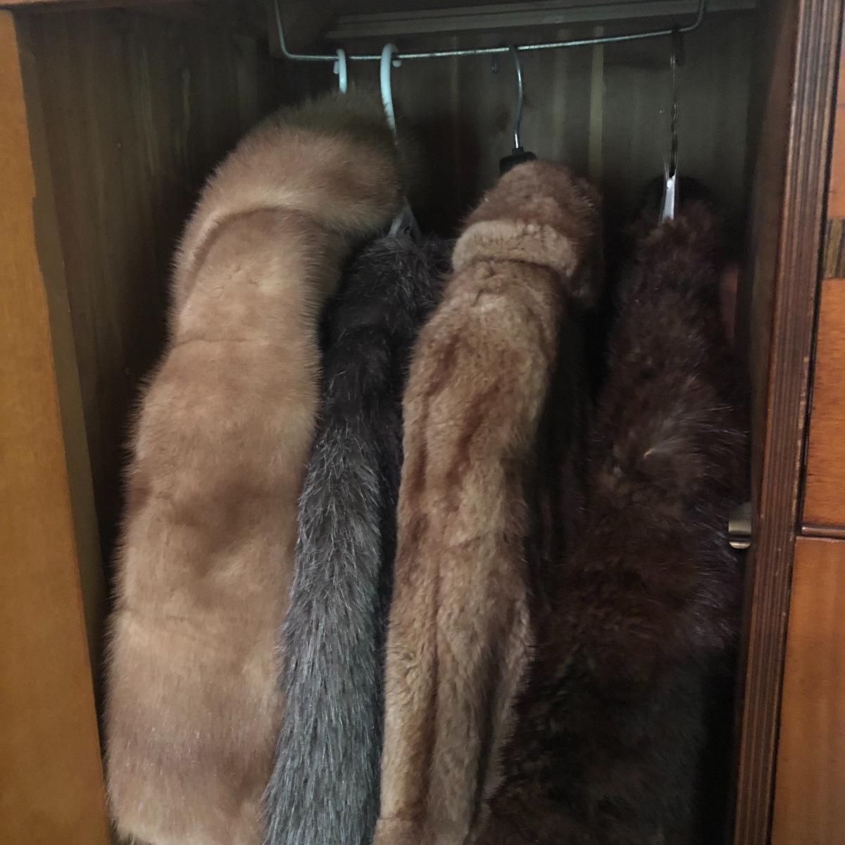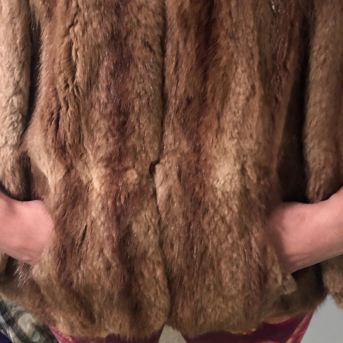 This lot contains an animal stole, a round fur hat and three wraps and a coat. All items are real fur except for the coat that is faux fur. The first coat is from the Canadian Fur Co. and is a fur cape. It latches and has outside pockets and a collar. The second one is from Silfens -Furs and is a fur wrap. It also has front outside pockets. The third item pictured is a wrap with collar and also has pockets. The fourth item is a lined coat and appears to be fur yet the tag indicates otherwise. Note the size on the label - size 14. Shipping Available.