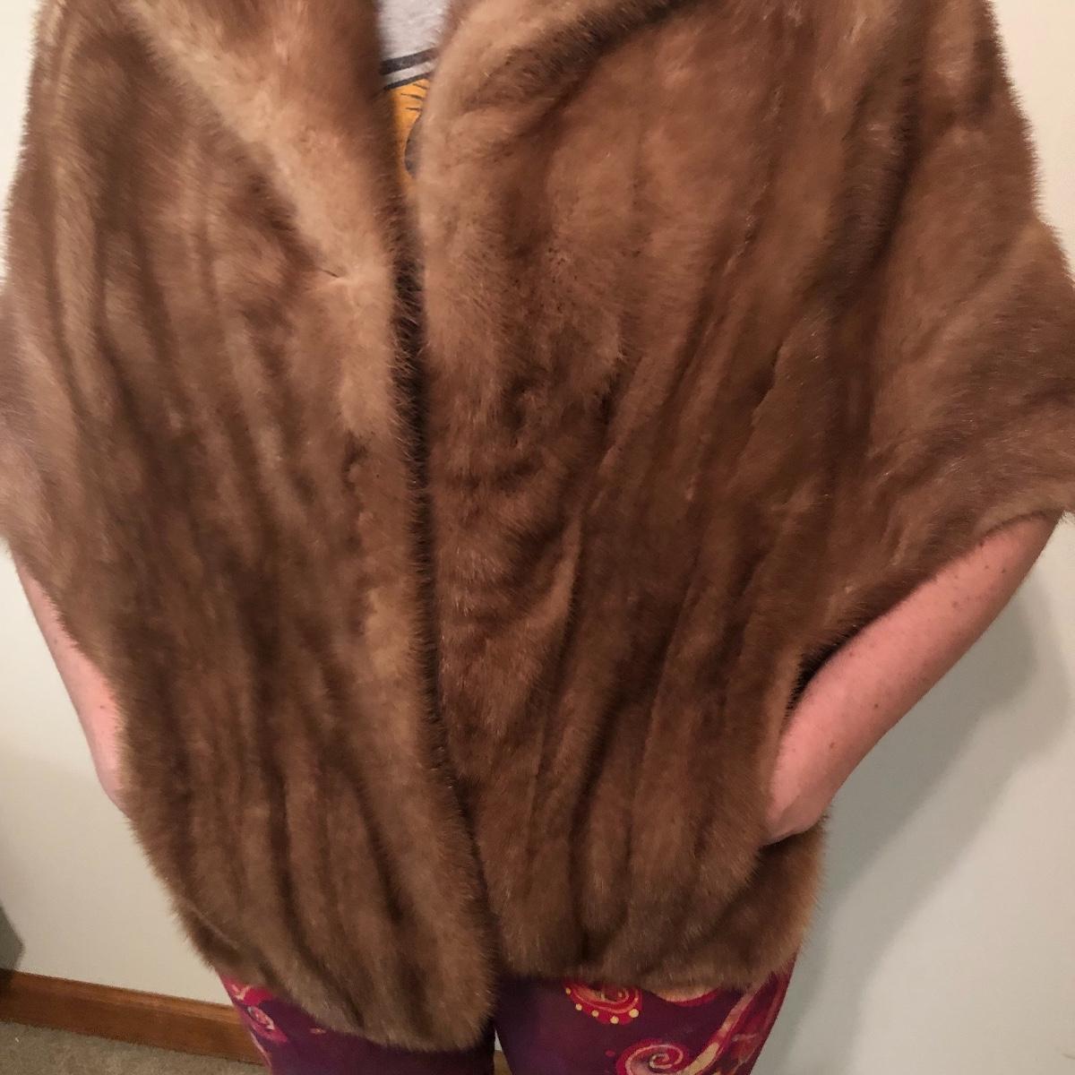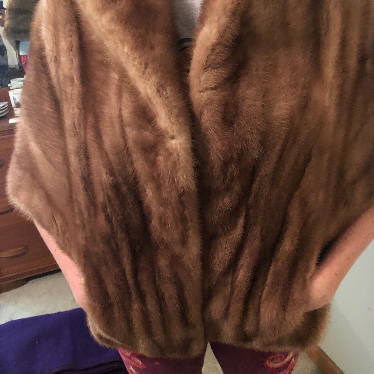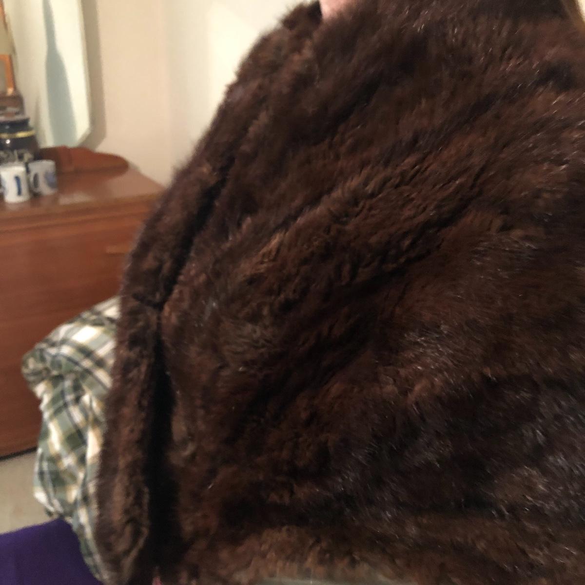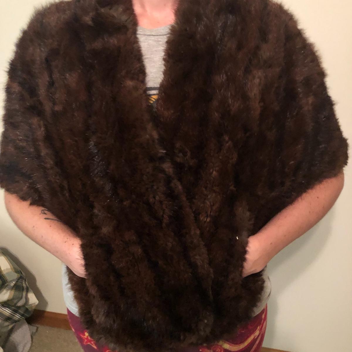 This lot contains an animal stole, a round fur hat and three wraps and a coat. All items are real fur except for the coat that is faux fur. The first coat is from the Canadian Fur Co. and is a fur cape. It latches and has outside pockets and a collar. The second one is from Silfens -Furs and is a fur wrap. It also has front outside pockets. The third item pictured is a wrap with collar and also has pockets. The fourth item is a lined coat and appears to be fur yet the tag indicates otherwise. Note the size on the label - size 14. Shipping Available.