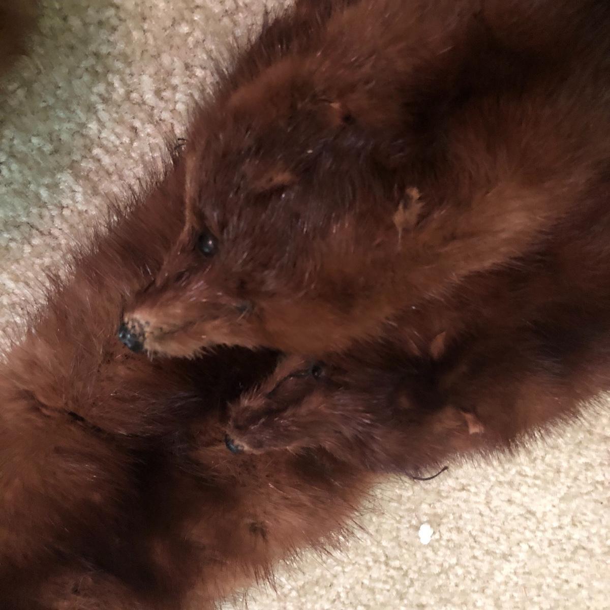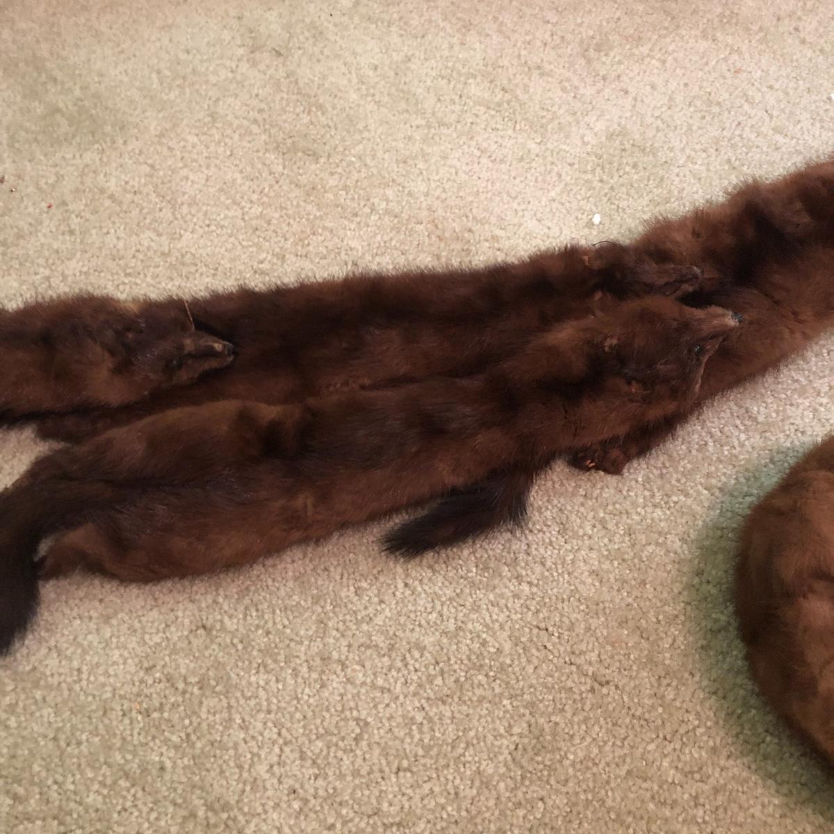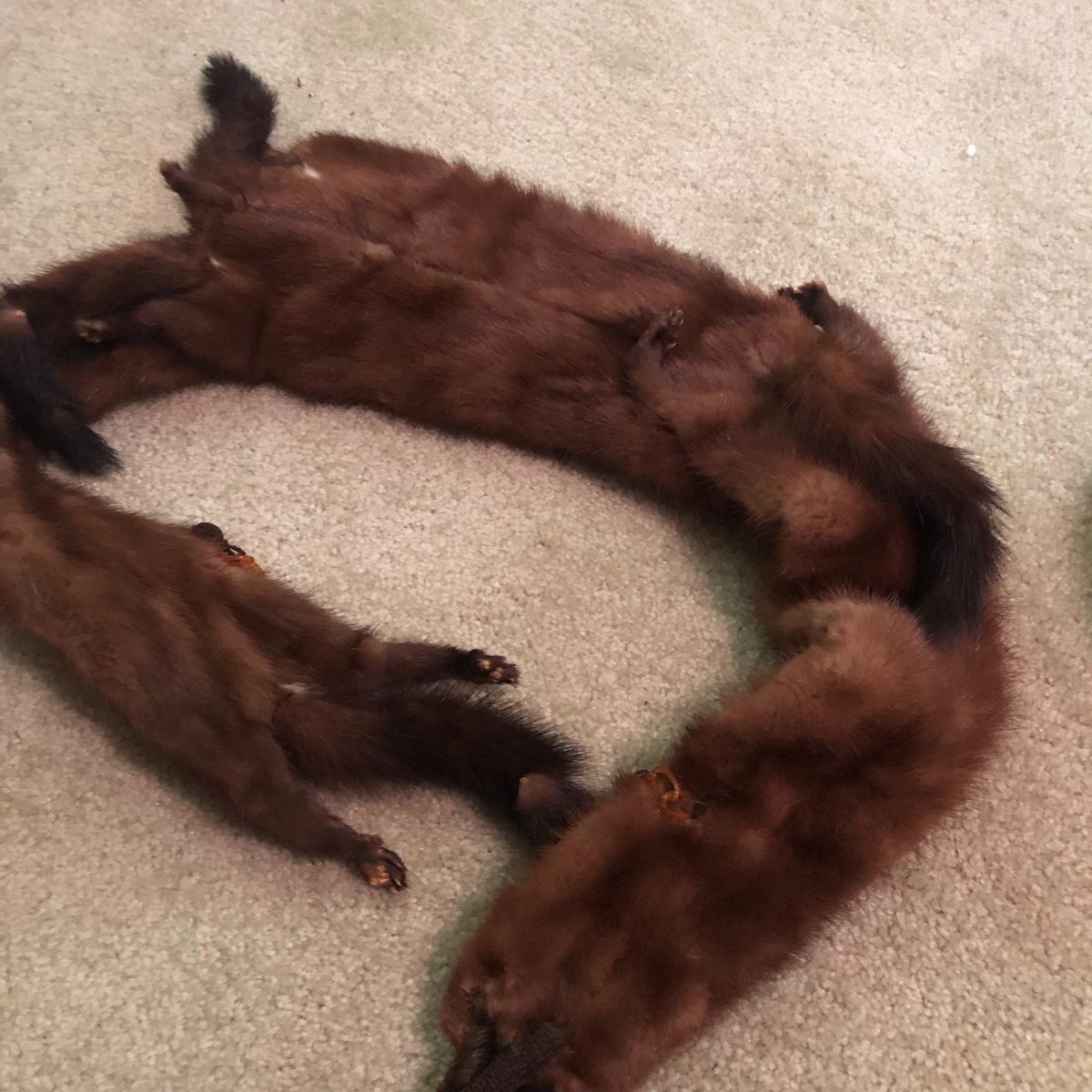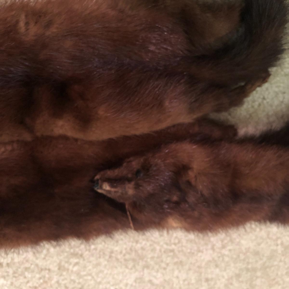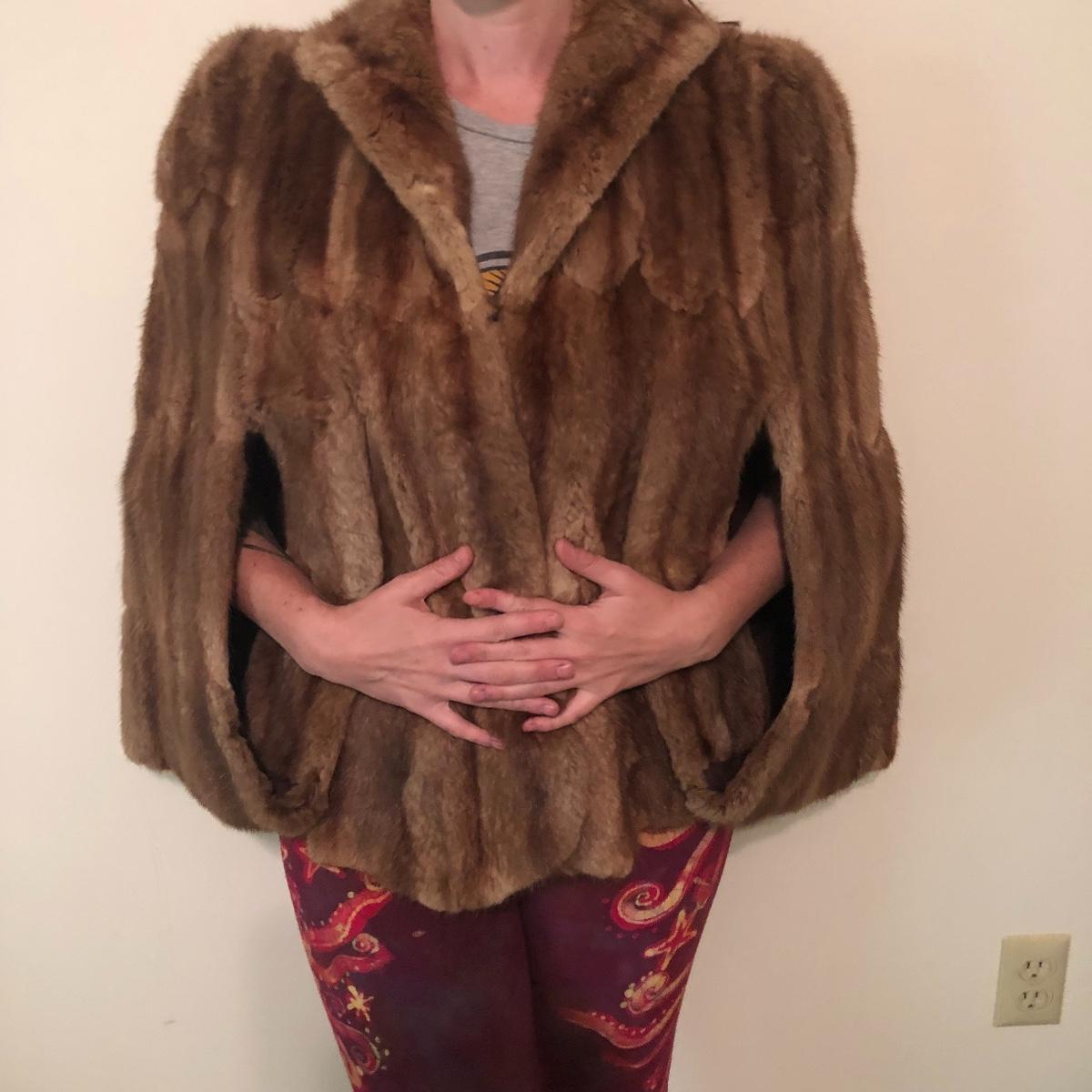 This lot contains an animal stole, a round fur hat and three wraps and a coat. All items are real fur except for the coat that is faux fur. The first coat is from the Canadian Fur Co. and is a fur cape. It latches and has outside pockets and a collar. The second one is from Silfens -Furs and is a fur wrap. It also has front outside pockets. The third item pictured is a wrap with collar and also has pockets. The fourth item is a lined coat and appears to be fur yet the tag indicates otherwise. Note the size on the label - size 14. Shipping Available.