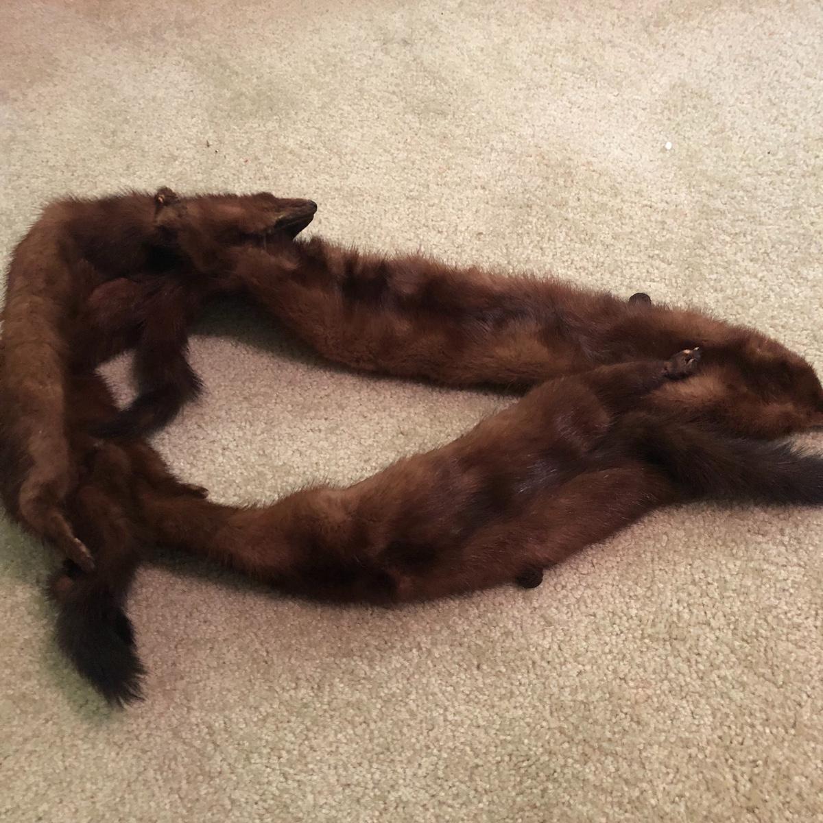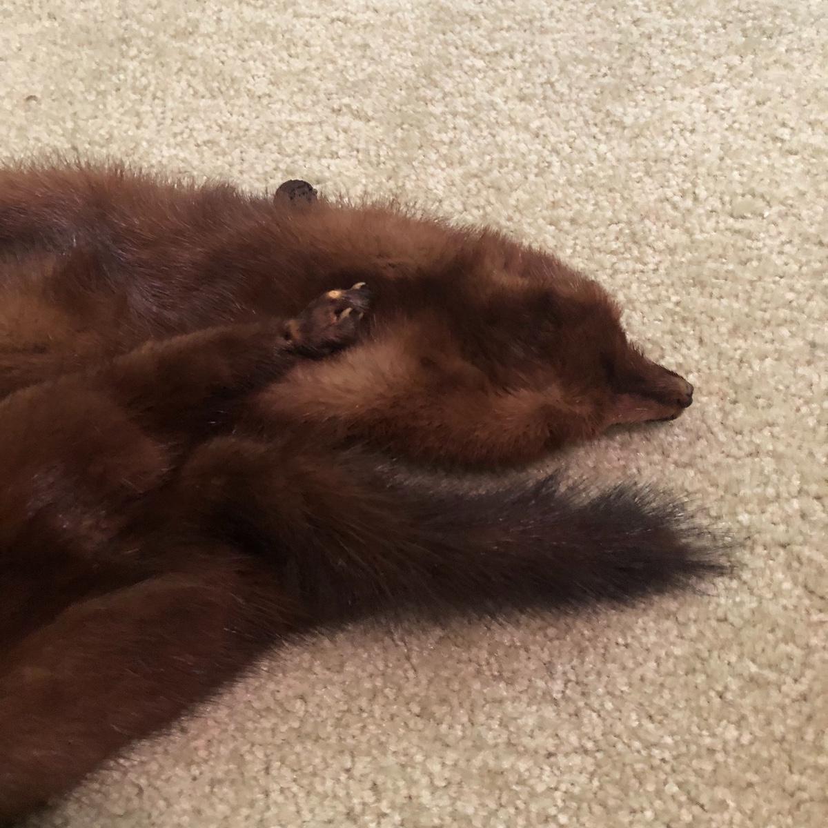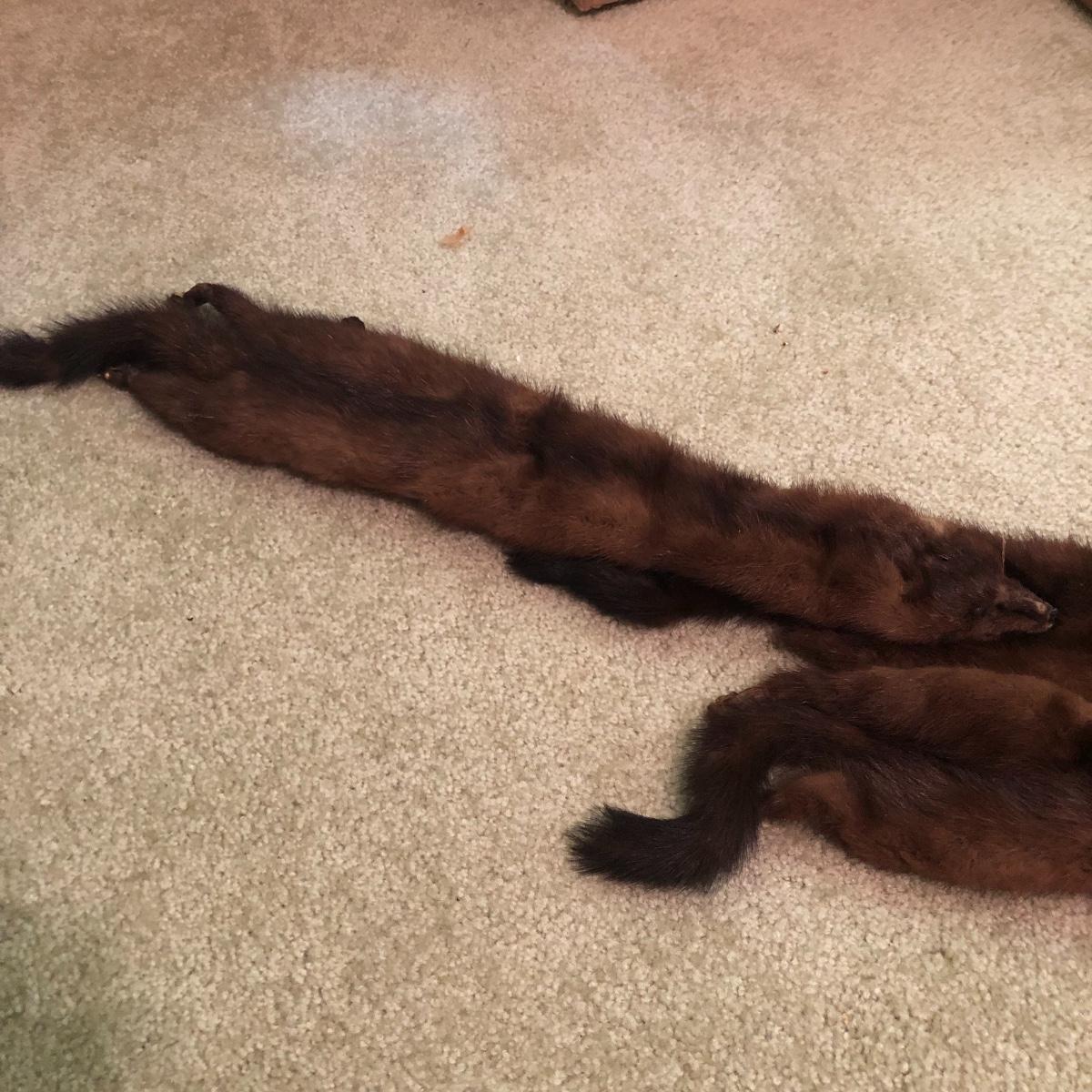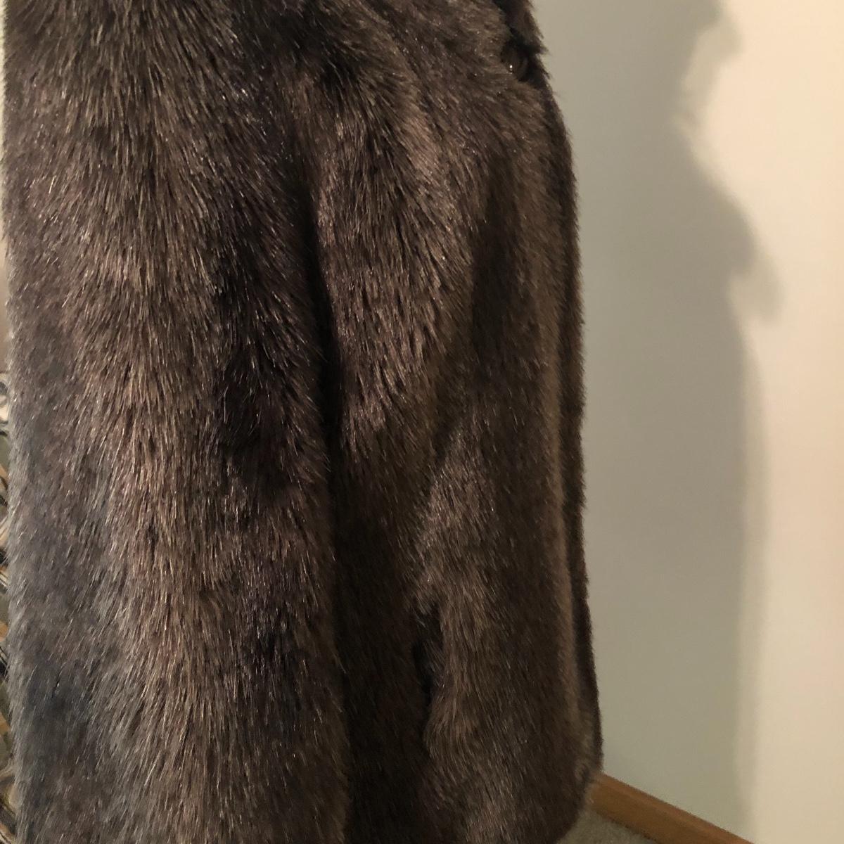 This lot contains an animal stole, a round fur hat and three wraps and a coat. All items are real fur except for the coat that is faux fur. The first coat is from the Canadian Fur Co. and is a fur cape. It latches and has outside pockets and a collar. The second one is from Silfens -Furs and is a fur wrap. It also has front outside pockets. The third item pictured is a wrap with collar and also has pockets. The fourth item is a lined coat and appears to be fur yet the tag indicates otherwise. Note the size on the label - size 14. Shipping Available.