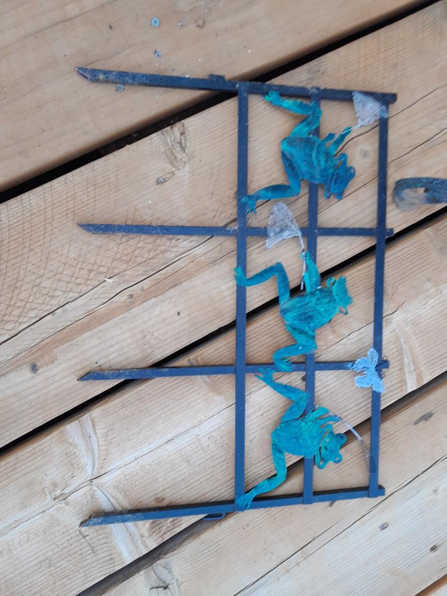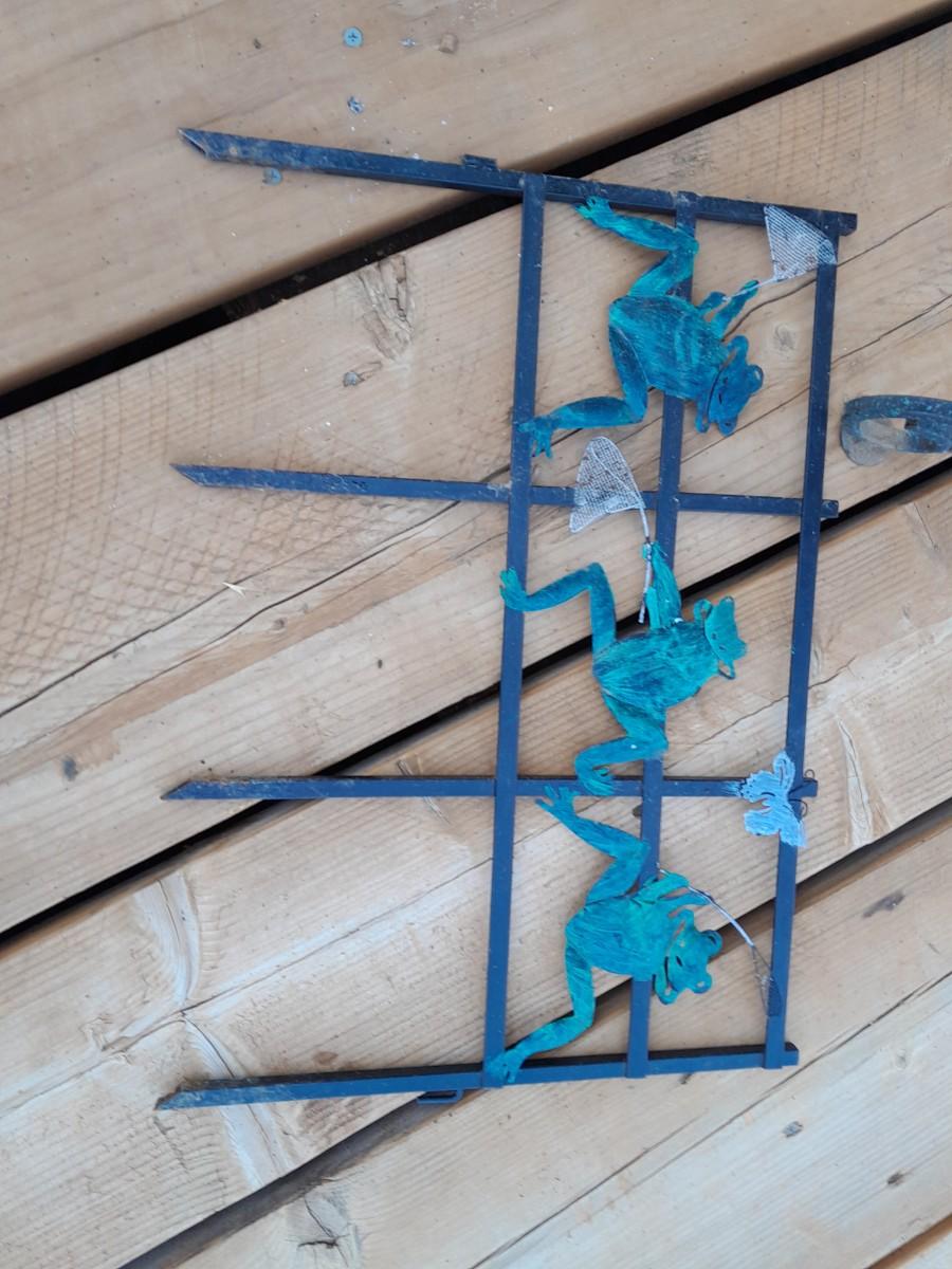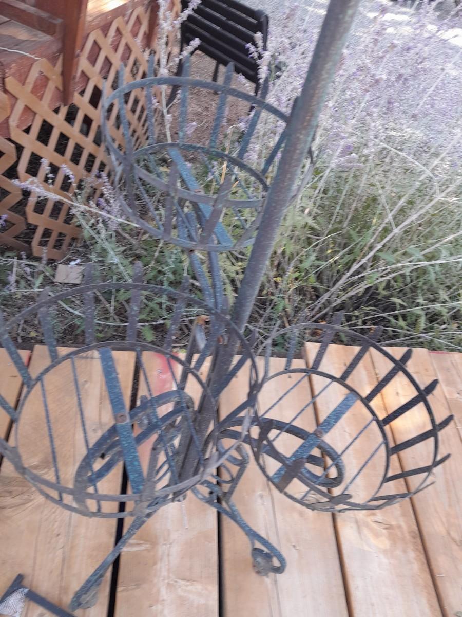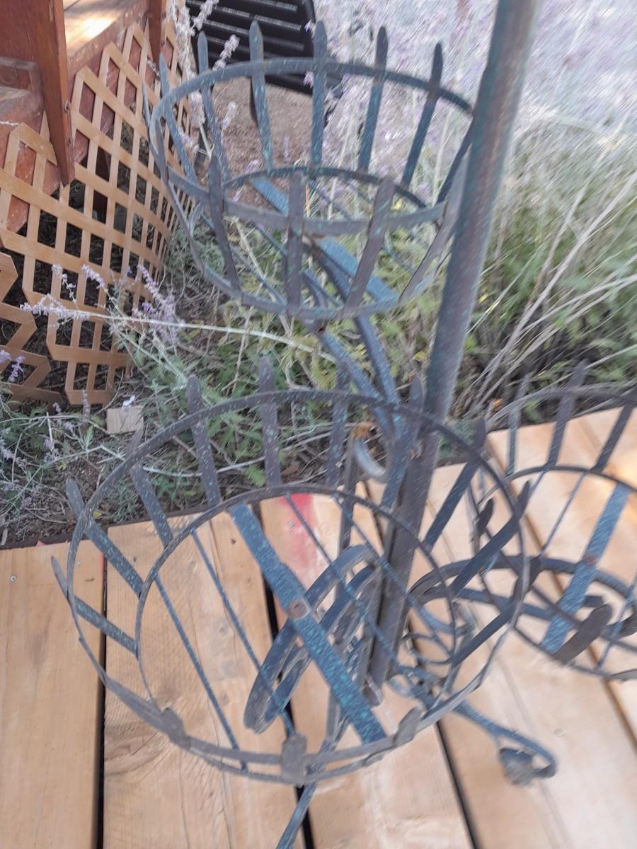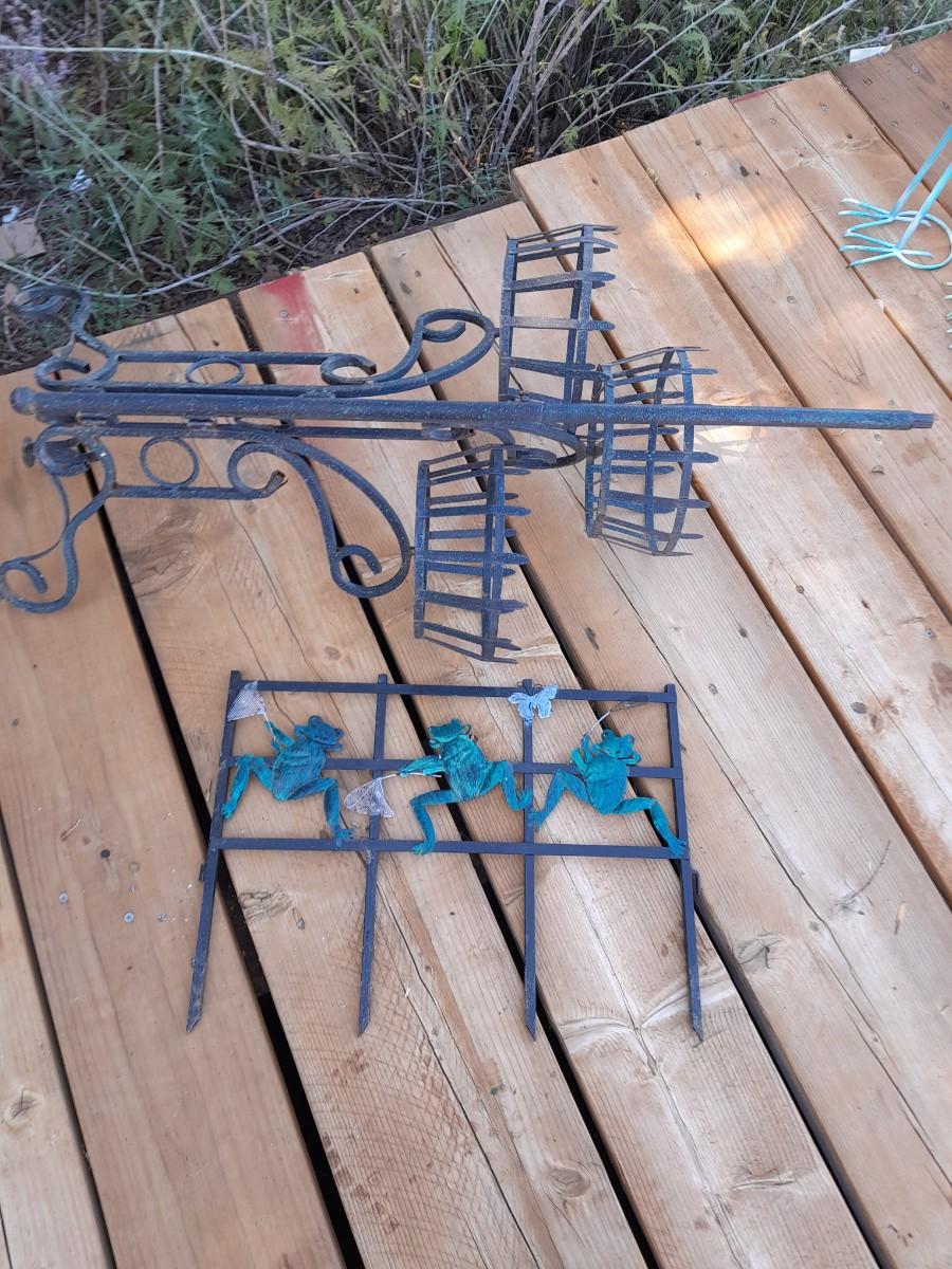MULTI TIERED FOLD UP PLANT STAND AND SMALL DECORATIVE FROG FENCE PANEL