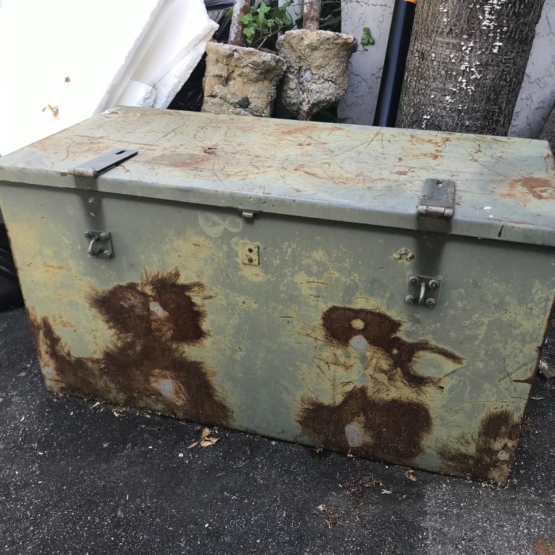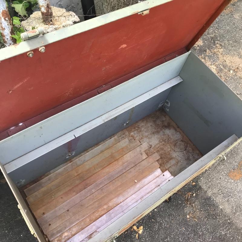 Lot includes scaffolding for your just-beyond-reach painting, renovating and cleaning projects. Very sturdy and approx. 48” x 27” x 96”. Wood slats not included. Lot also contains metal job box for storing and locking your tools. Approx 38.5” x 18.5” x 20.5” with minimal surface rust. Local pickup only.