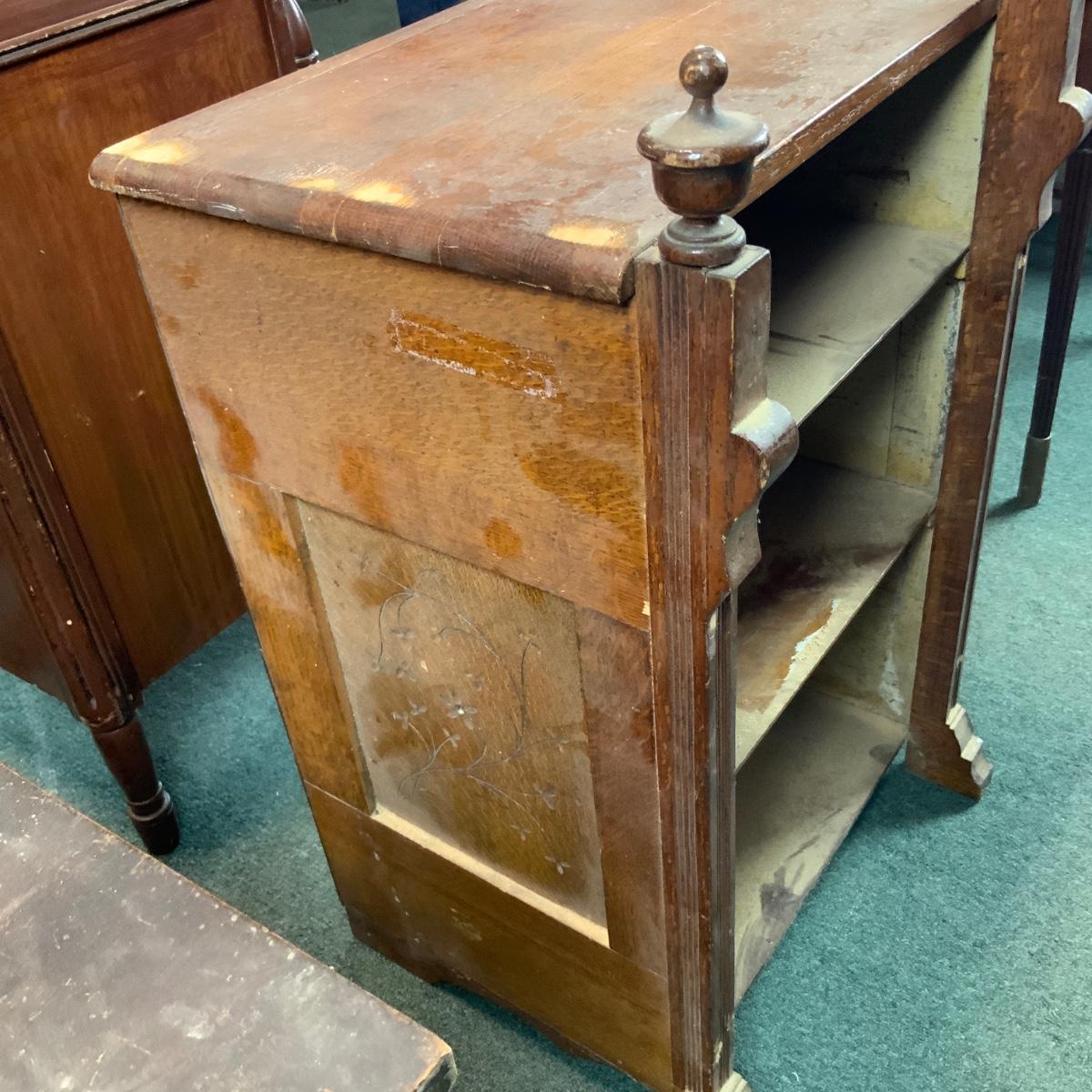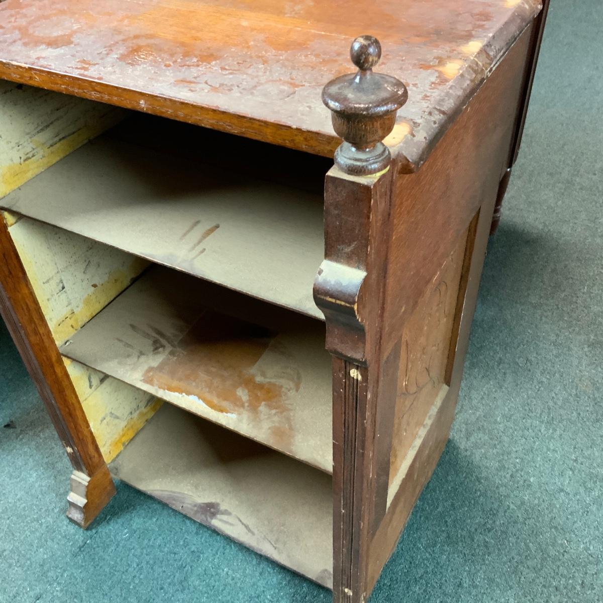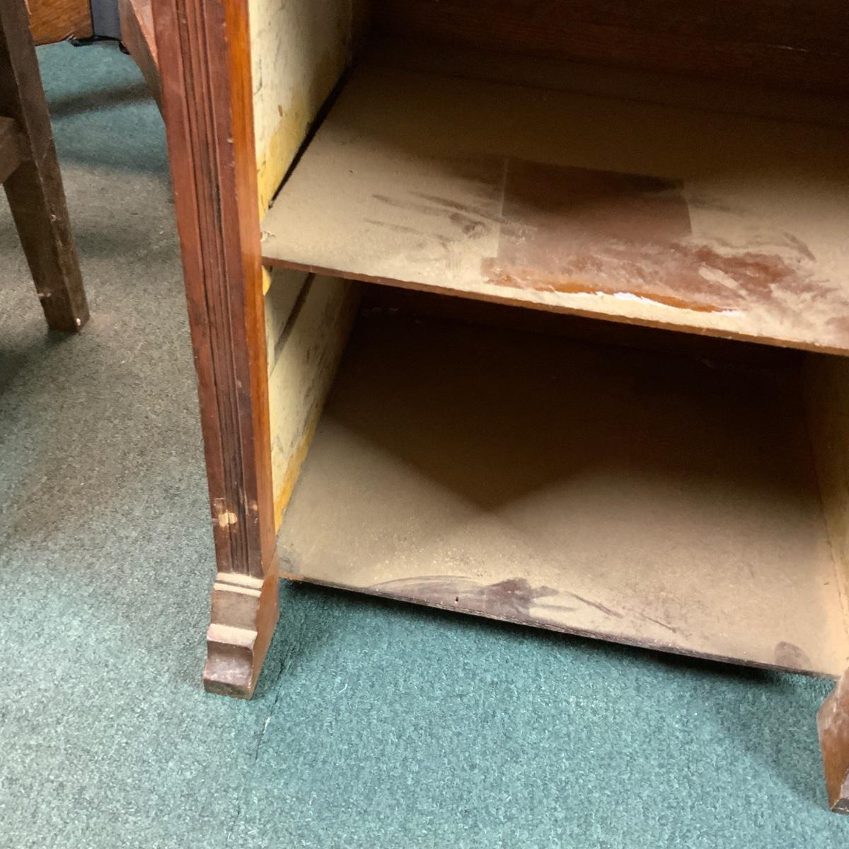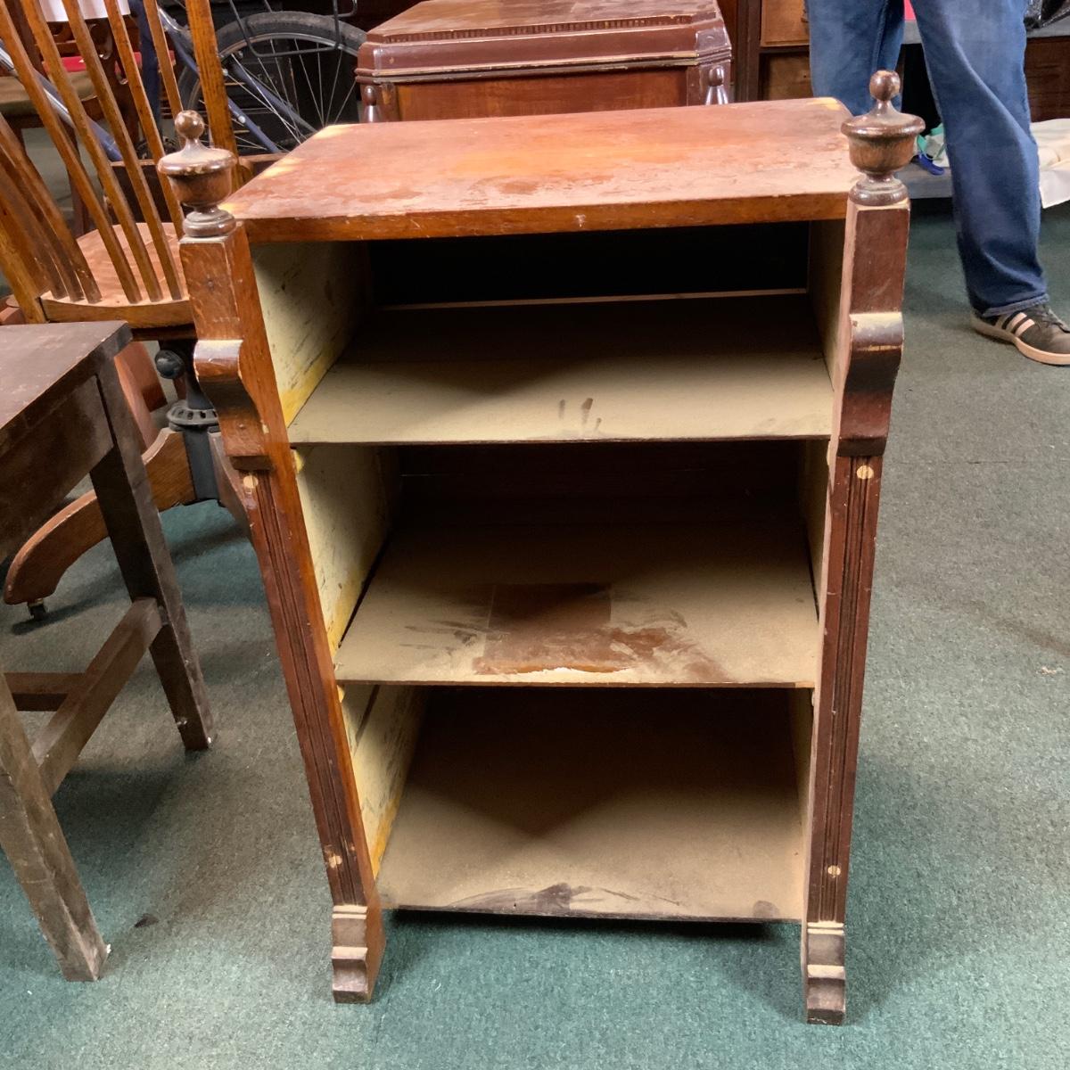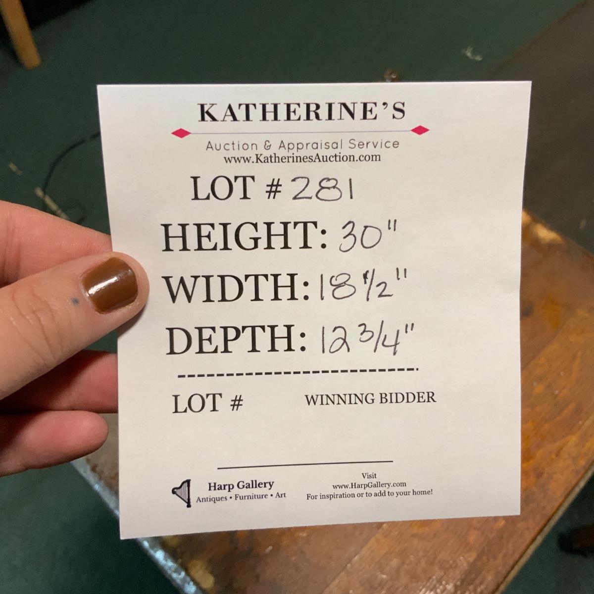 Small accent cabinet needs some cleaning. //::\\ Please see photos for details and condition. No attempt has been made to hide any imperfections. All items listed in this auction are warehouse items, and need to be cleaned. A majority of the items need restoration as well. All items are sold AS IS and WITHOUT GUARANTEE. If you are uncertain about an item, DO NOT BID. Due to the nature of this online auction in-person inspection is HIGHLY recommended. All Sales are FINAL. Pick Up Times are FIRM. Please confirm with your own schedule that you can pick up in the scheduled times listed in the Terms and Conditions. Any questions please message the auctioneer. DO NOT Contact The Harp Gallery.