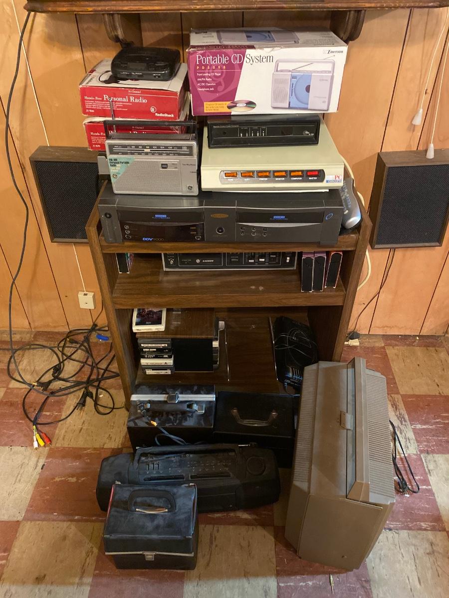Lot includes vintage radios and other stereo equipment. Speakers, cd players and more. Please see all pictures as they are the best representation of the items. The pictures show condition, measurements if taken, and what is included in the lot. Due to the large amount that we photograph and the time frame, we are not always able to take measurements. All items unless noted, are pre-owned and have been used. If you purchased furniture, you must bring help. We do not allow one person to carry large furniture out on their own. Bring help, tools and a truck for the safety of our client’s homes, and your personal safety. Any damages that result to the property including walls, and floors due to moving of the furniture will be charged to the buyer. Company policy. Thank you