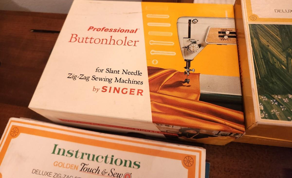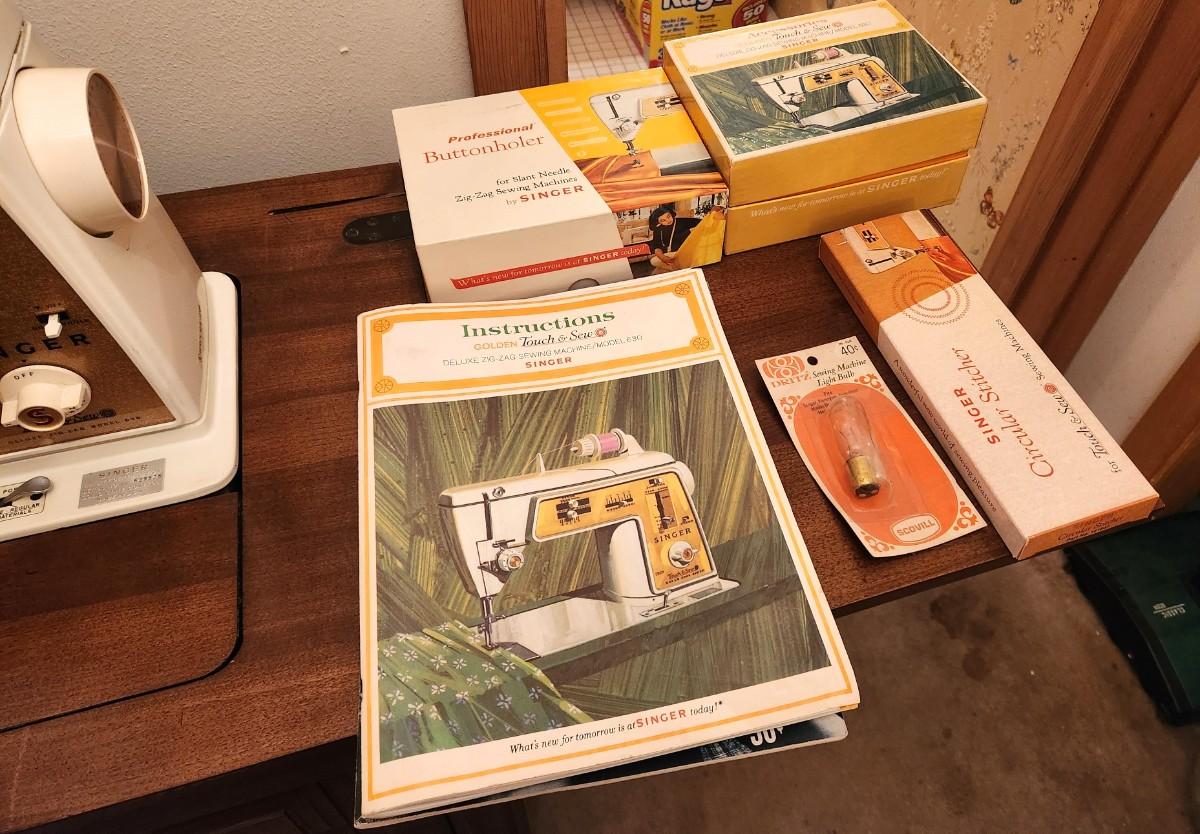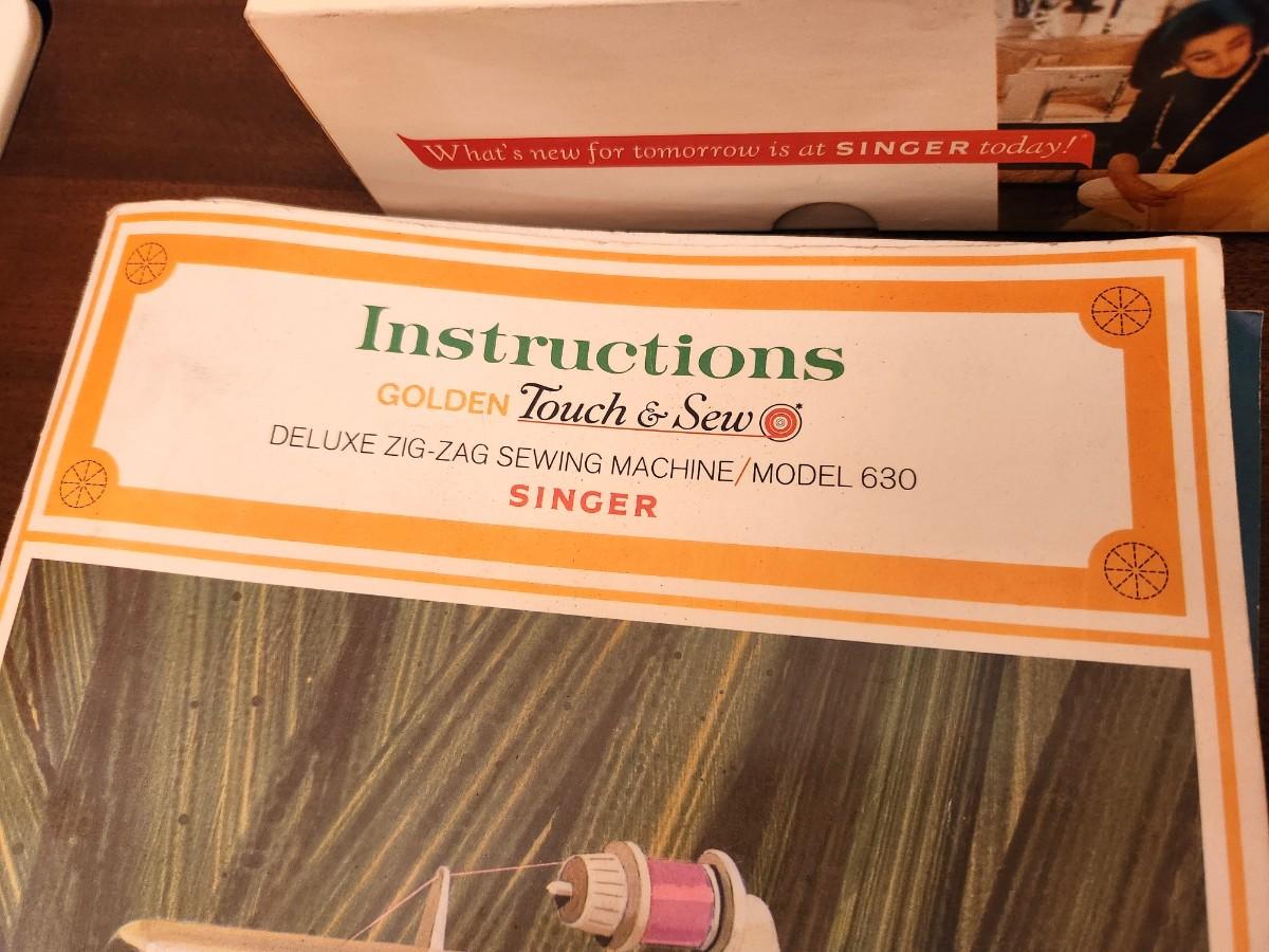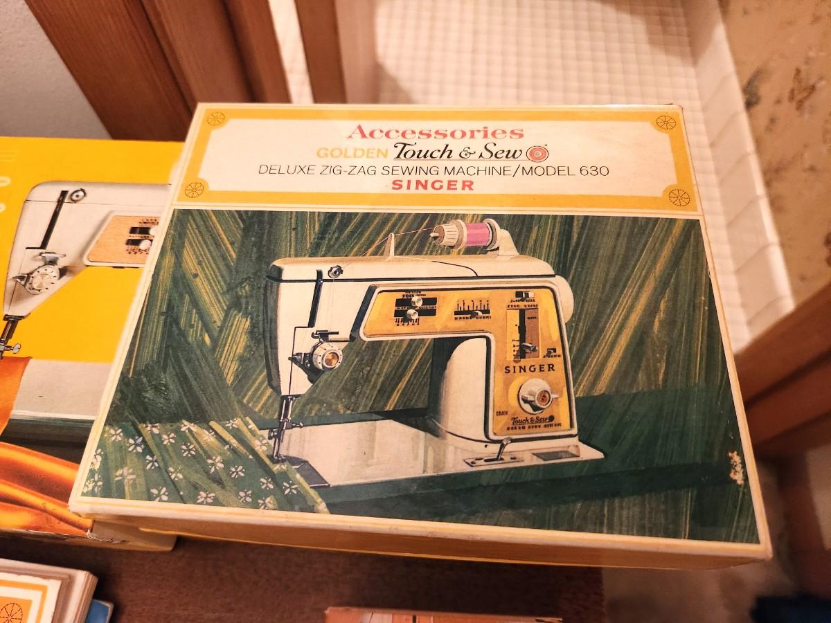 1968 Golden Touch & Sew Sewing Machine in Cabinet - Model 630. Comes with manual, button holer and other accessories as shown in photos. You get all you see here.