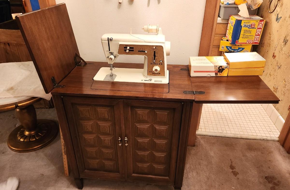 Lot #281 Vintage Golden Touch & Sew Sewing Machine in Cabinet - Model 630 - 1968