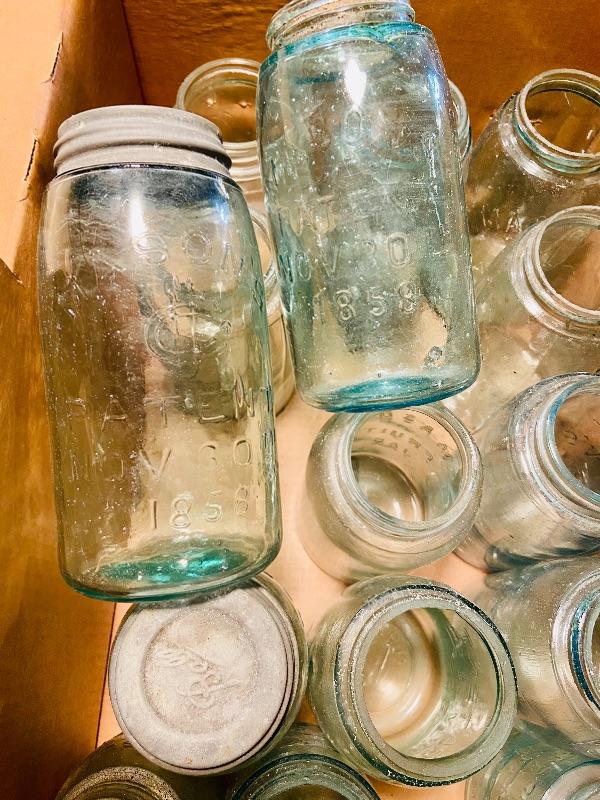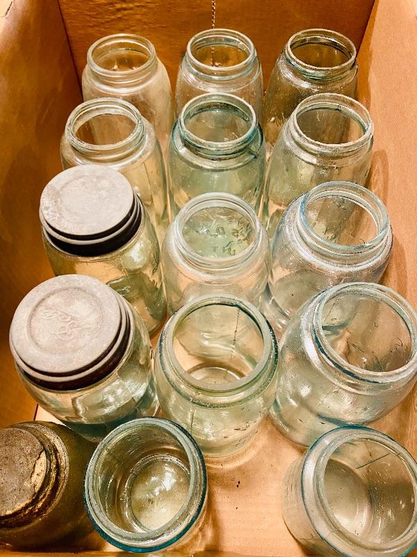 Box lot of vintage mason jars. MHW