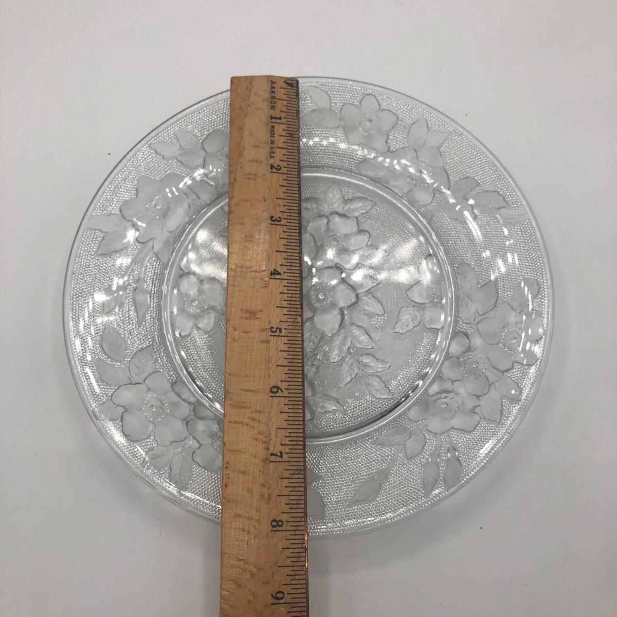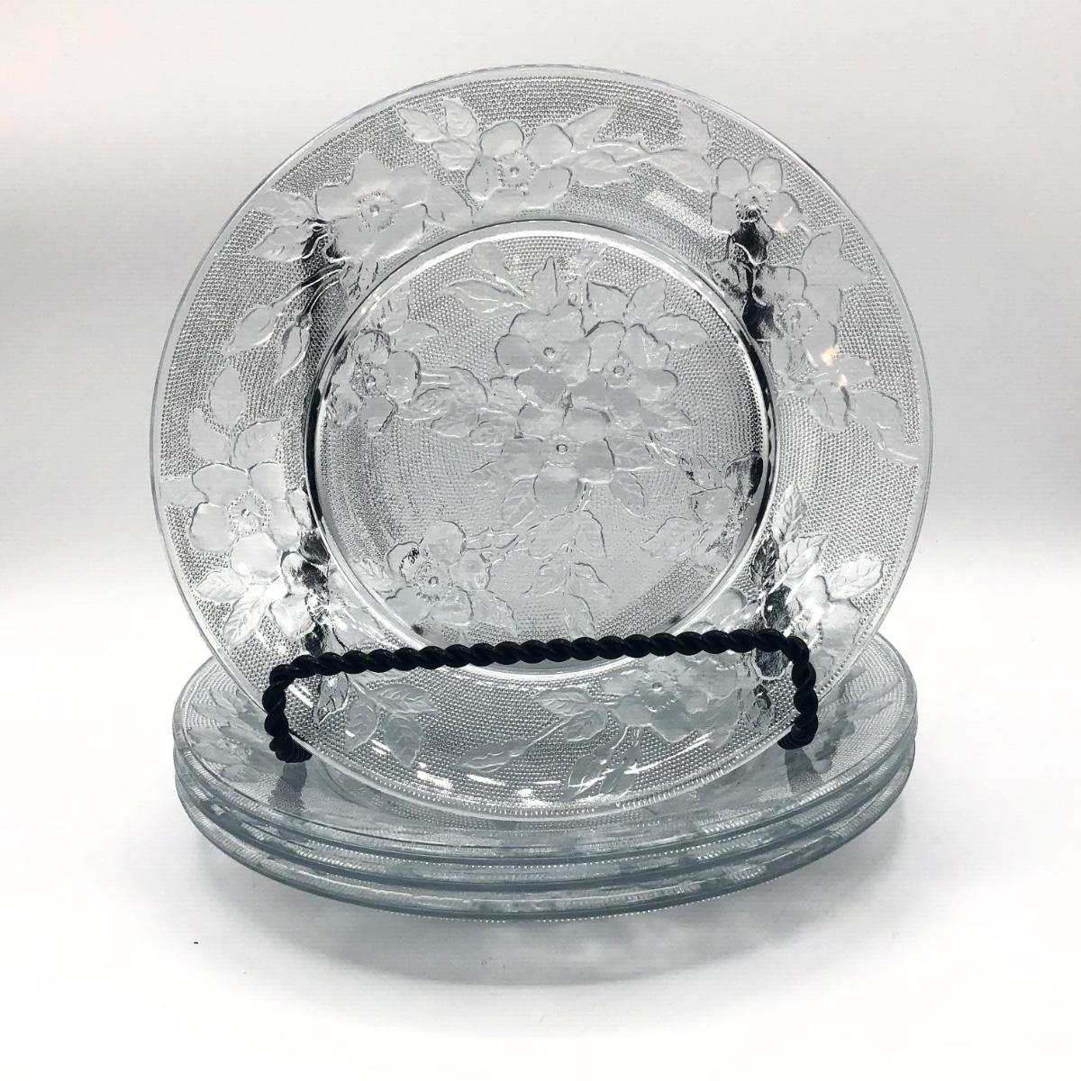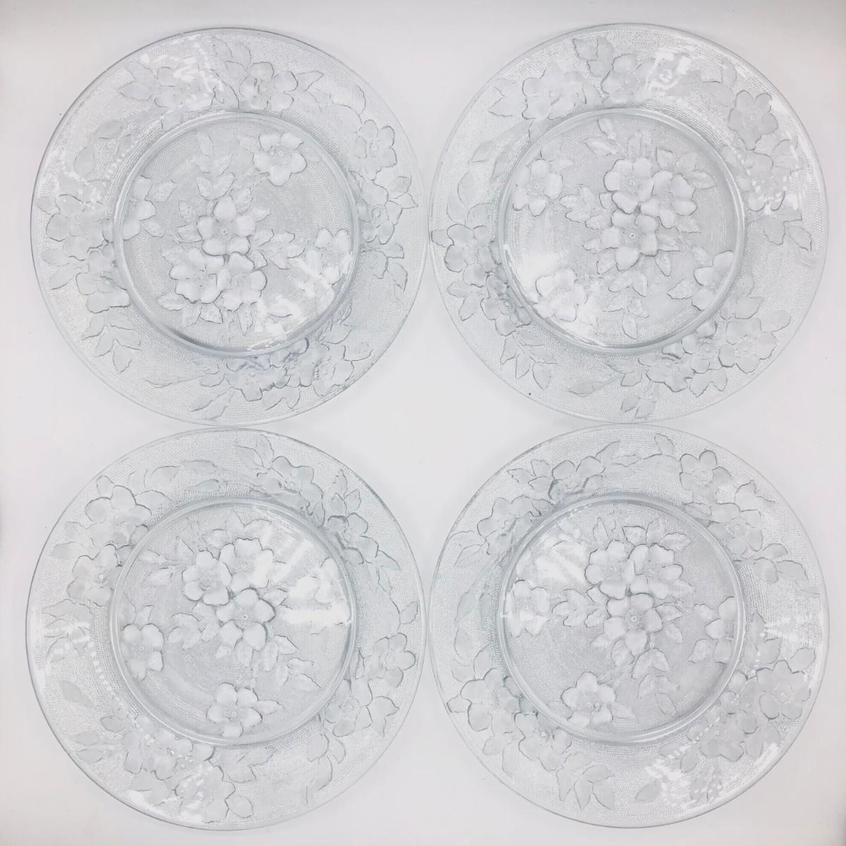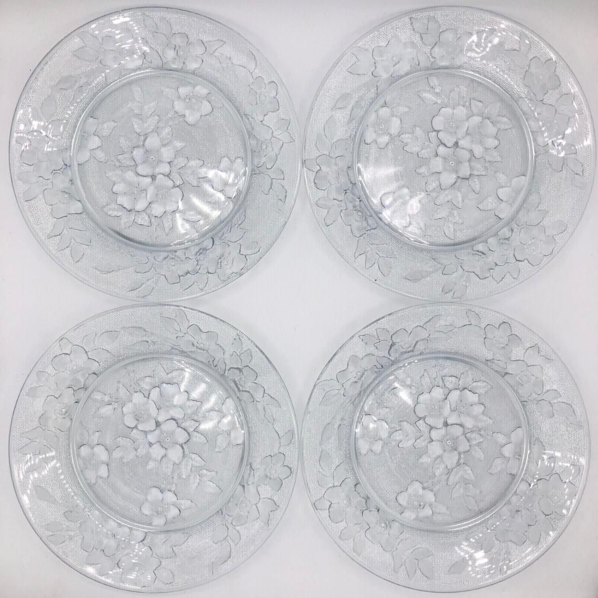 LOT 281F: Four Vintage Clear Depression Glass Salad Plates w/ Floral Design