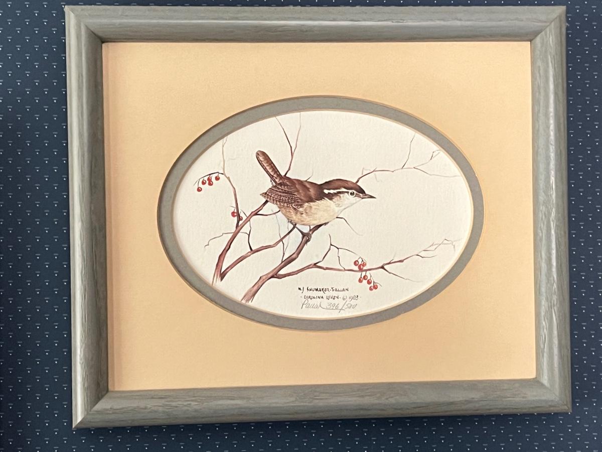 LOT 282X: Framed Bird Themed Wall Art with Shumaker Pallan Signed and Numbered Print