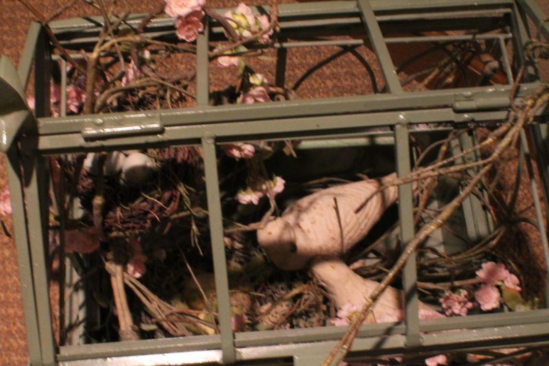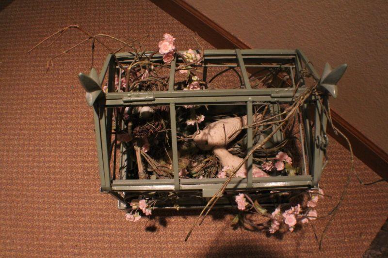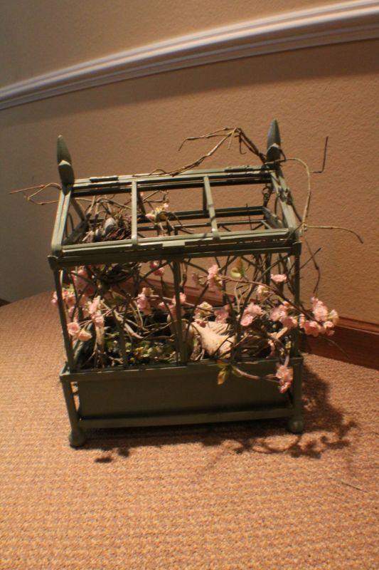 LOT #282: Large Home deco Bird Cage w/ artificial floral arrangement inside.