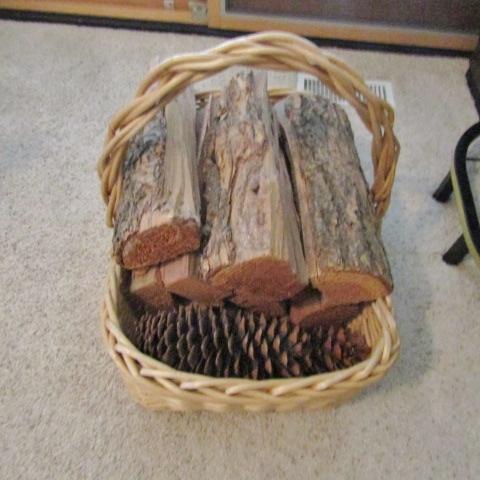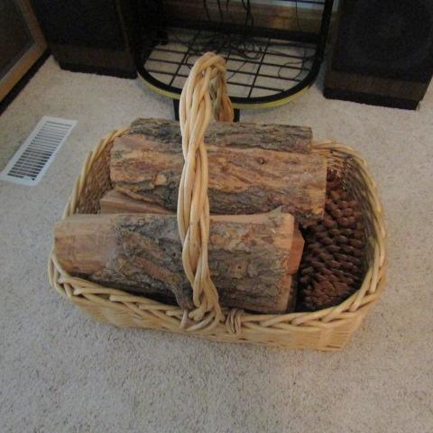 ALSO A LARGE WICKER BASKET OF FIRE WOOD