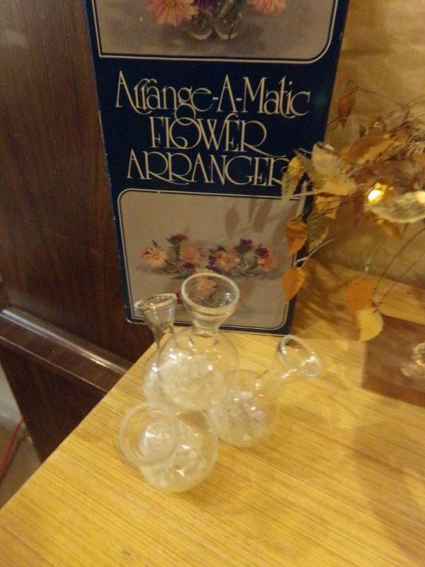 ARRANGE A MATIC FLOWER ARRANGER, MINI SINGLE BULB GLASS VASE, COPPER LEAF TREE, 2 VASES, DRIED FLOWERS/GREENERY, TUBE CHIME