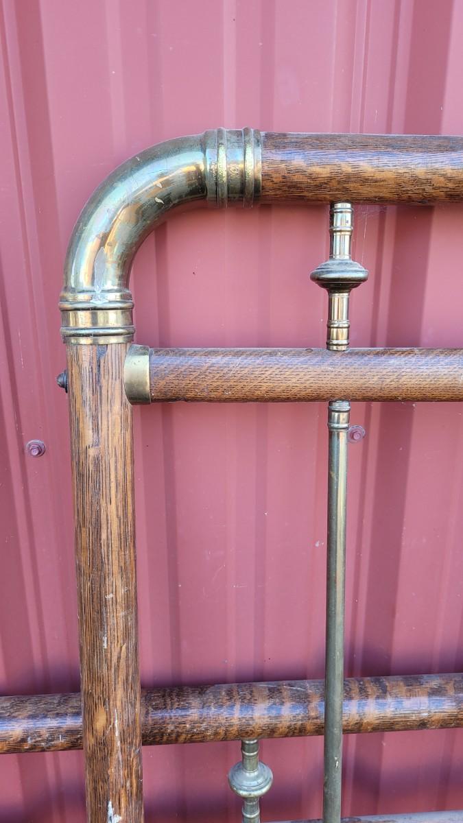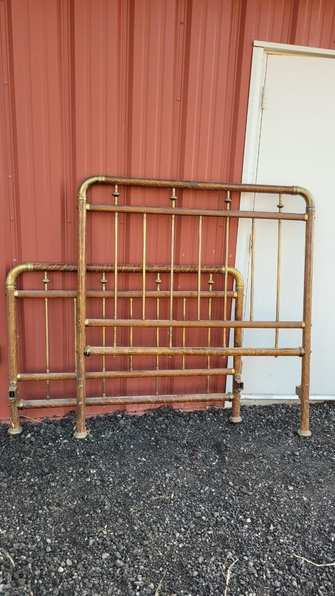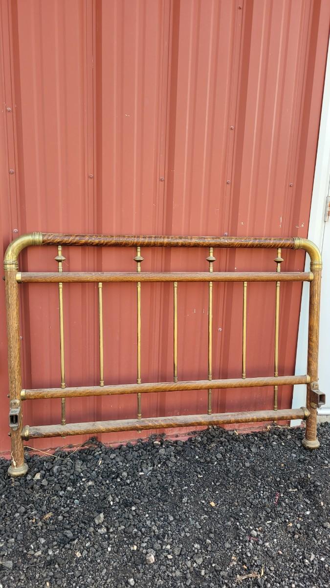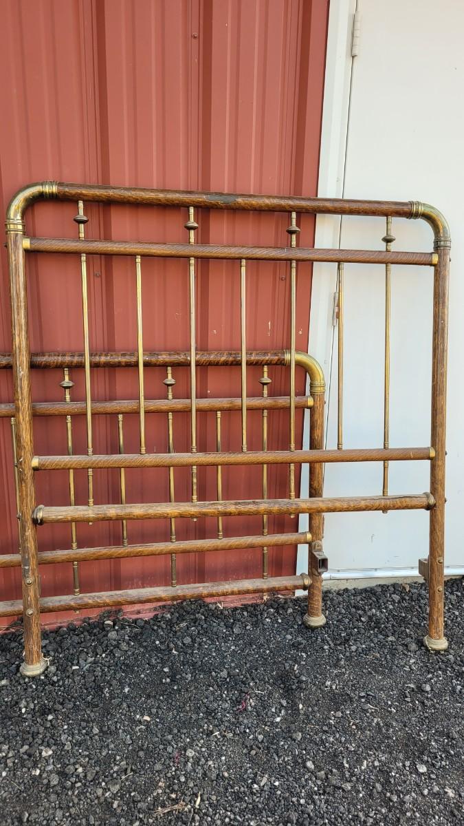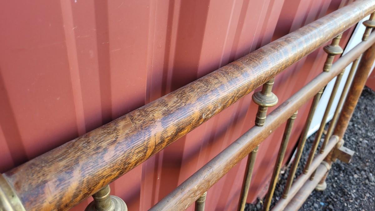 Lot 282: Antique Cast Iron and Brass Bed (w/ Wood Veneer Accents)