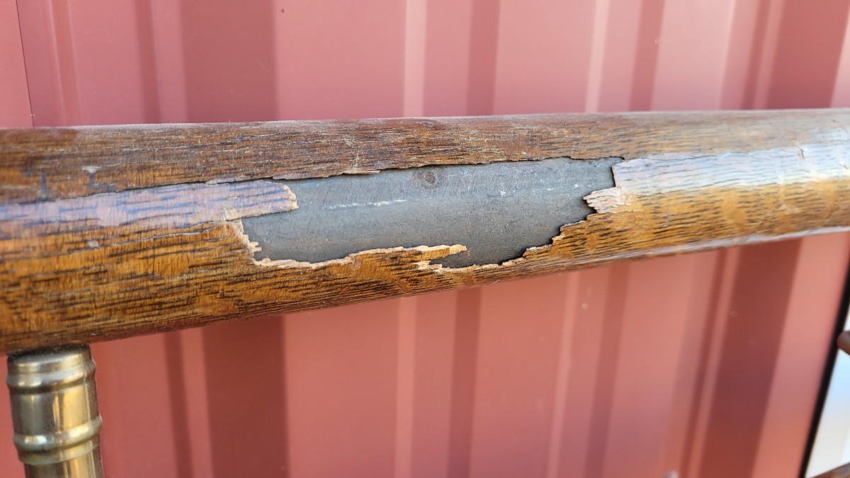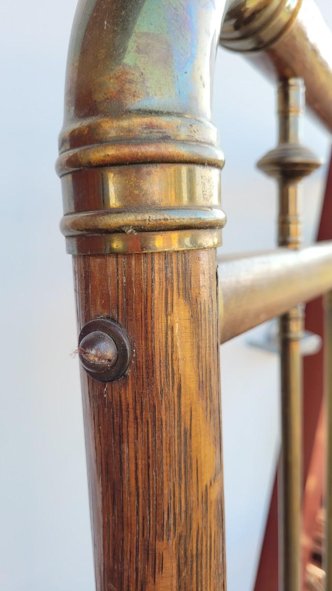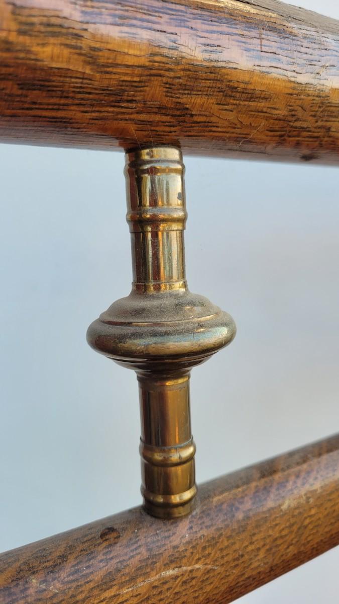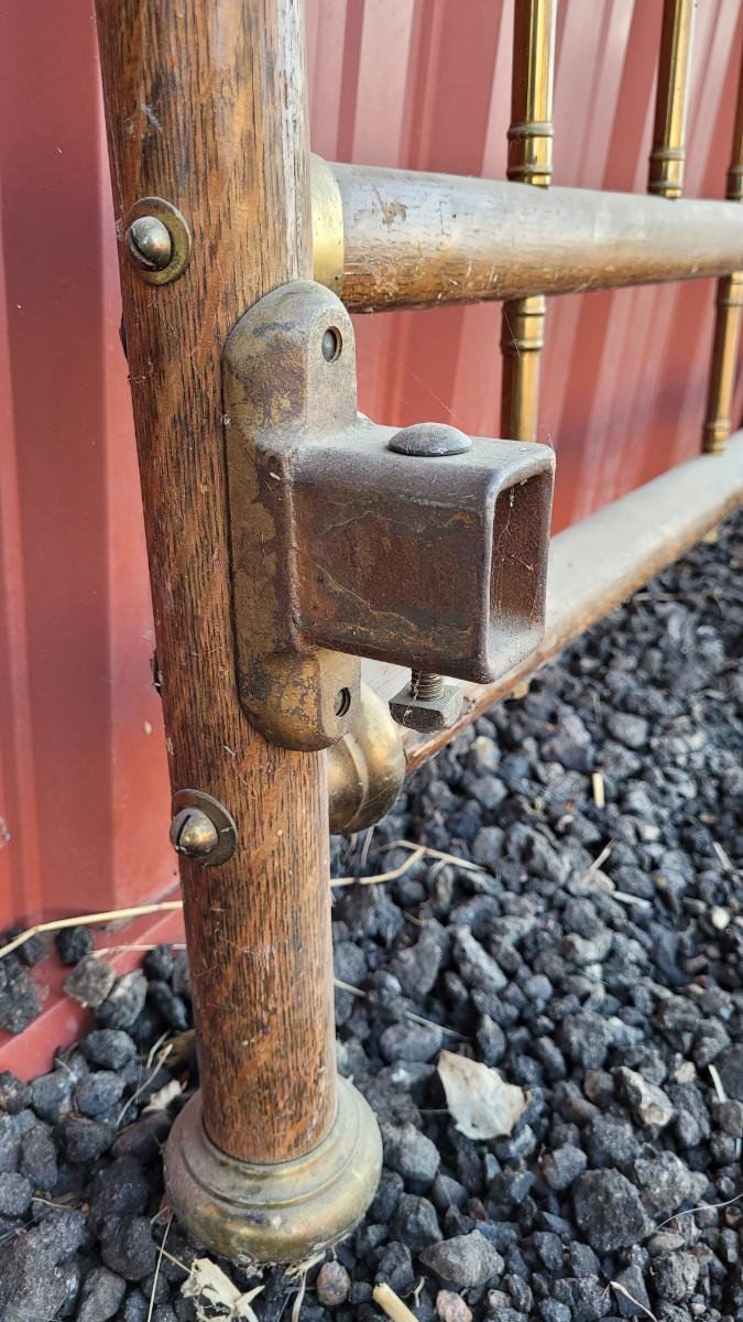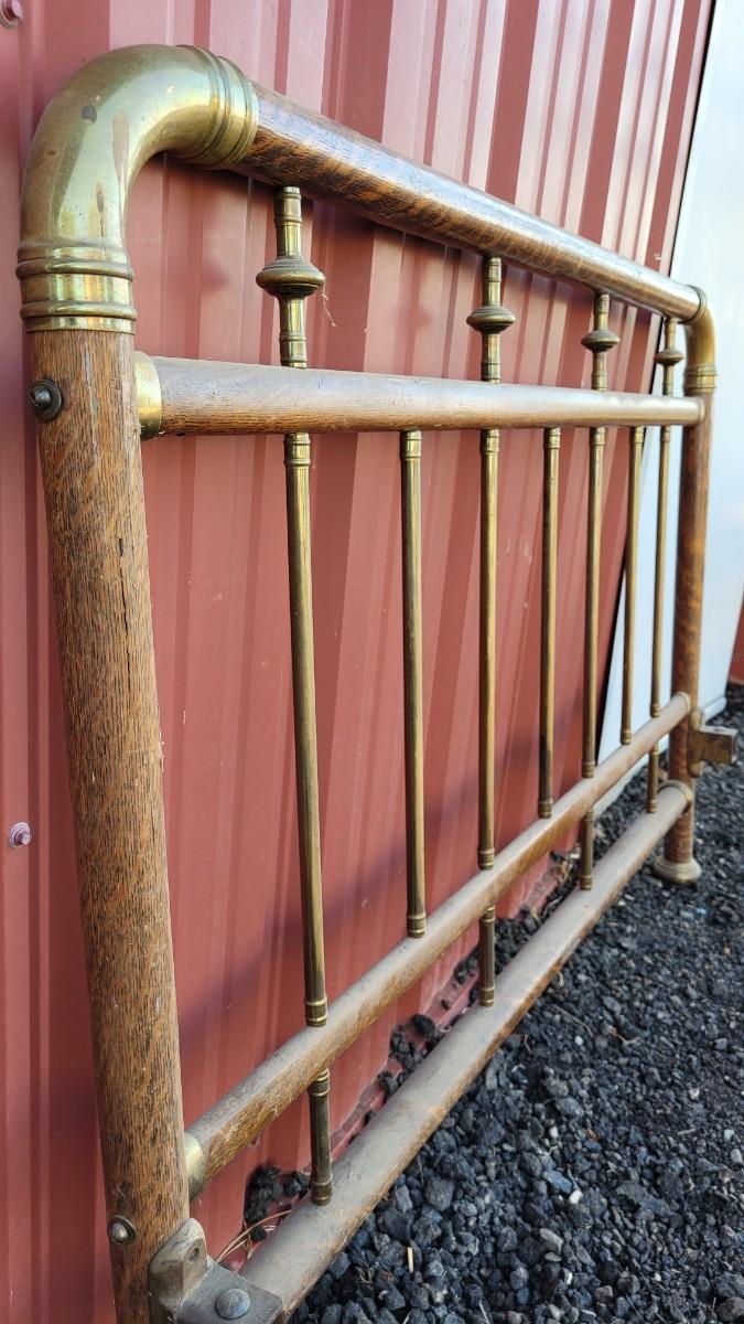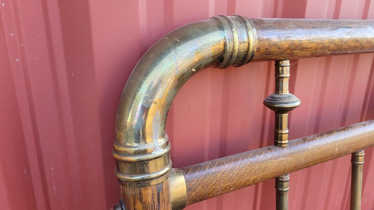 Lot 282: Antique Cast Iron and Brass Bed (w/ Wood Veneer Accents)