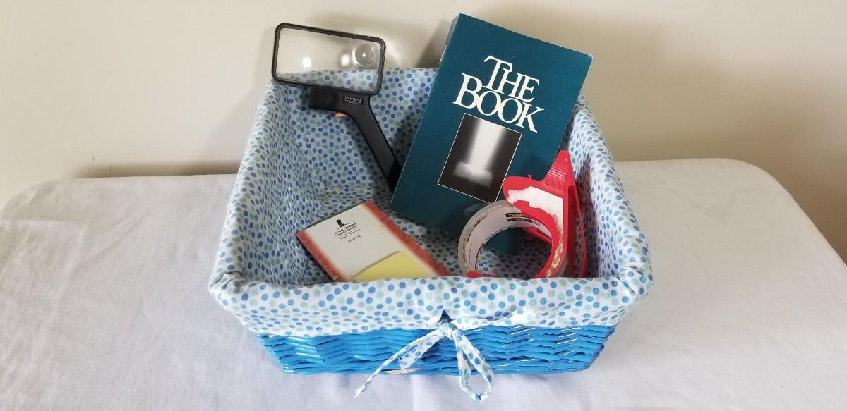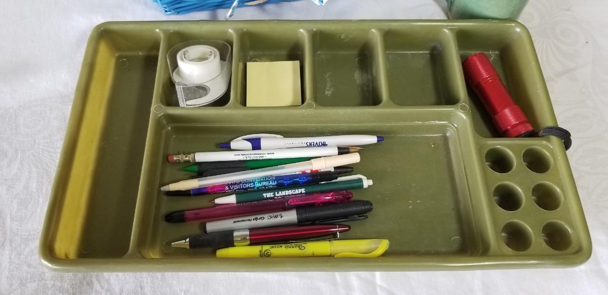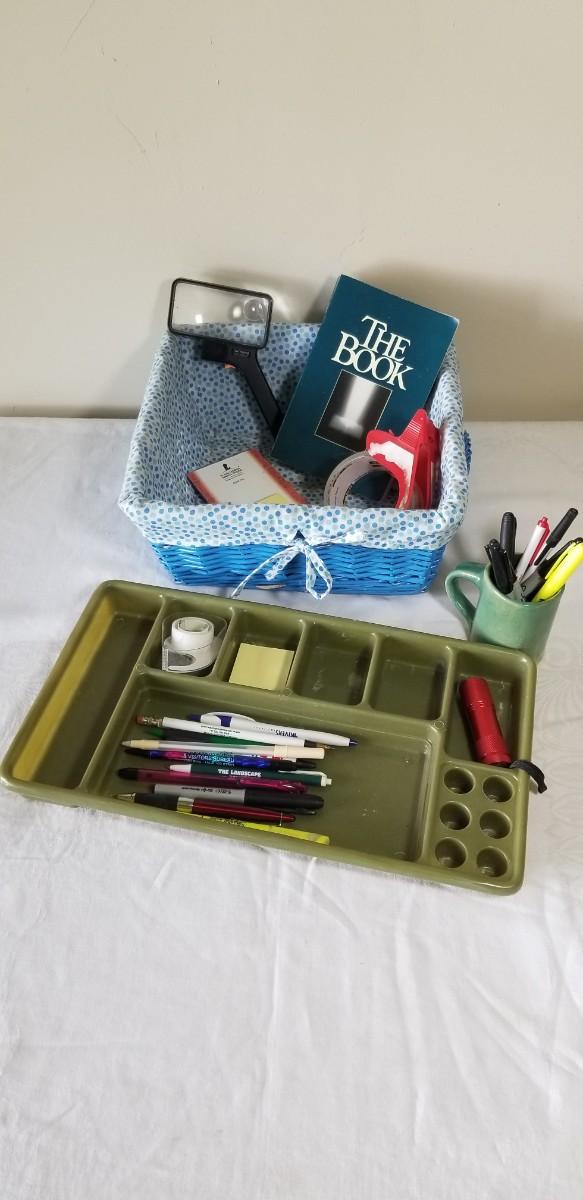 Lot 282: Office Supplies, a Drawer Organizer, Basket and Coffee Cup