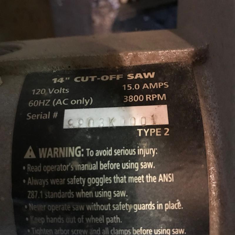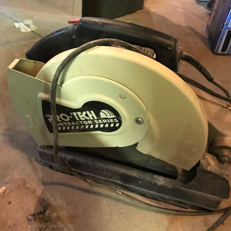 Lot includes 10” Delta Bench Saw and Pro-Tech 14” Cut Off Saw. Also includes a saw table. No shipping Local pick up only