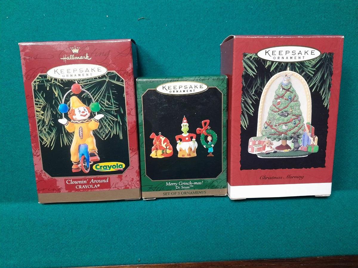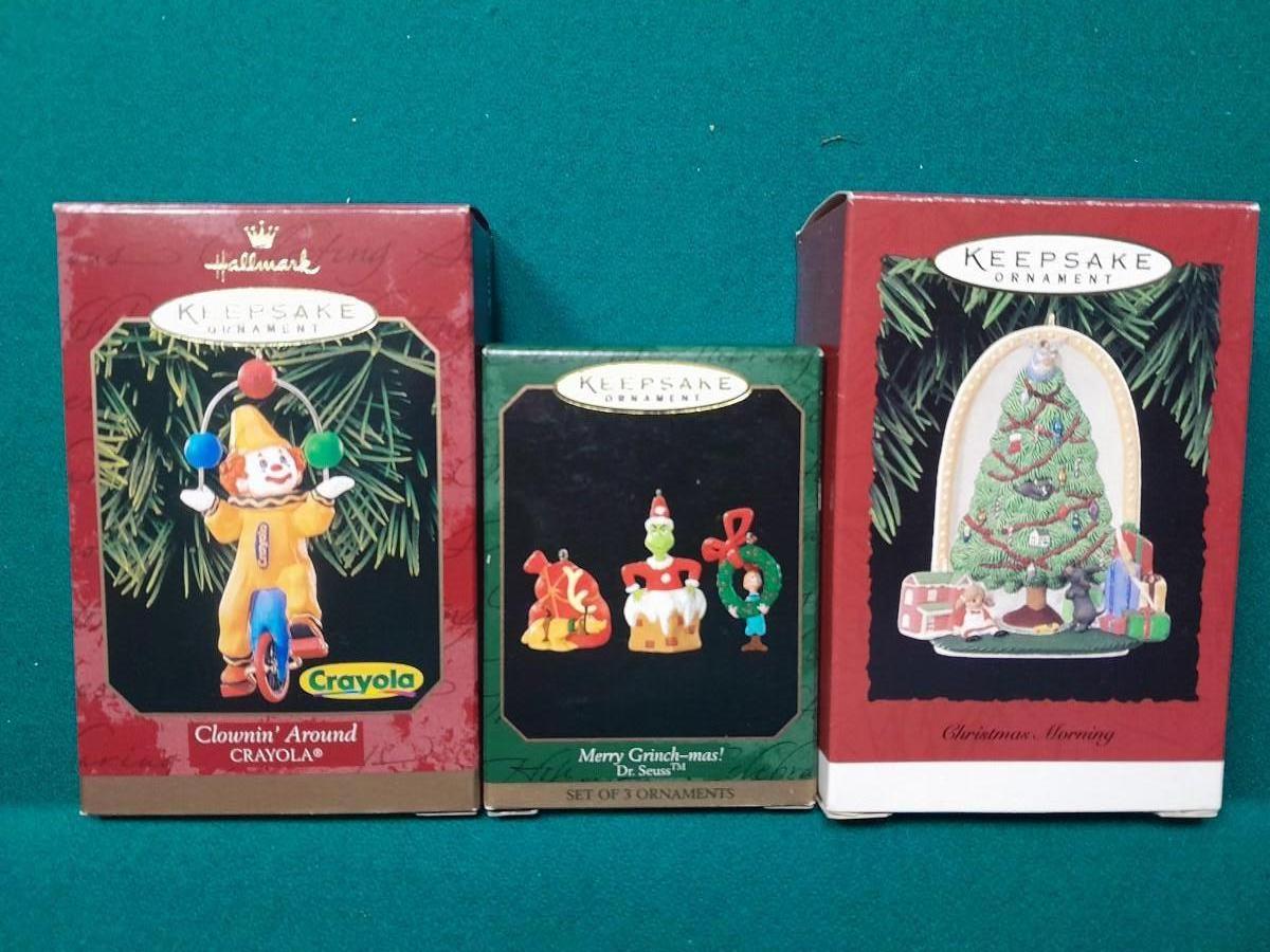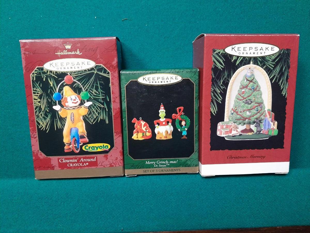 HALLMARK CHRISTMAS ORNAMENTS GRINCH, TREE AND CLOWN