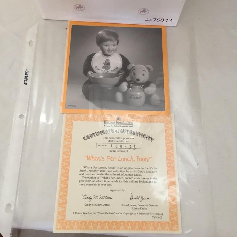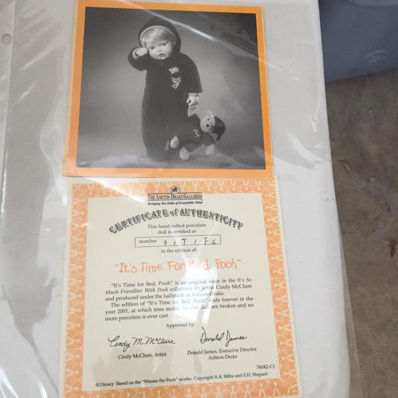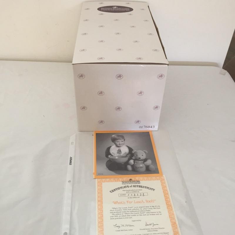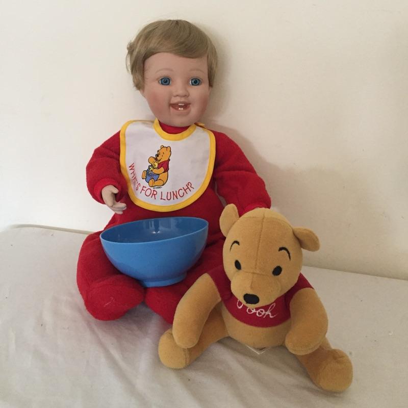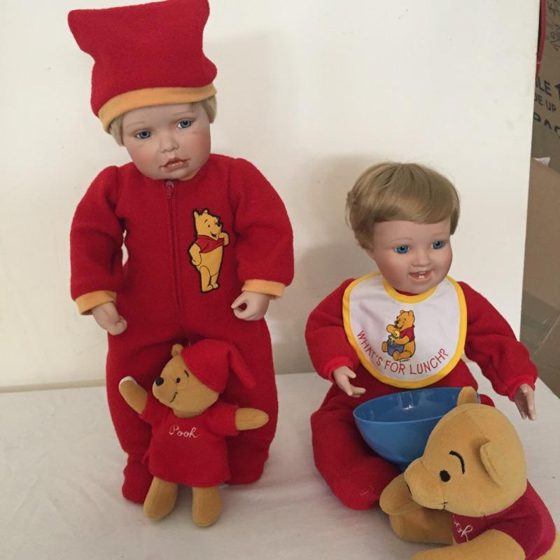 Its So Much Friendlier With Pooh Collection Dolls by Ashton-Drake includes Its time for bed, Pooh in pjs and What’s for lunch Pooh ? with honey pot. Both with COA.